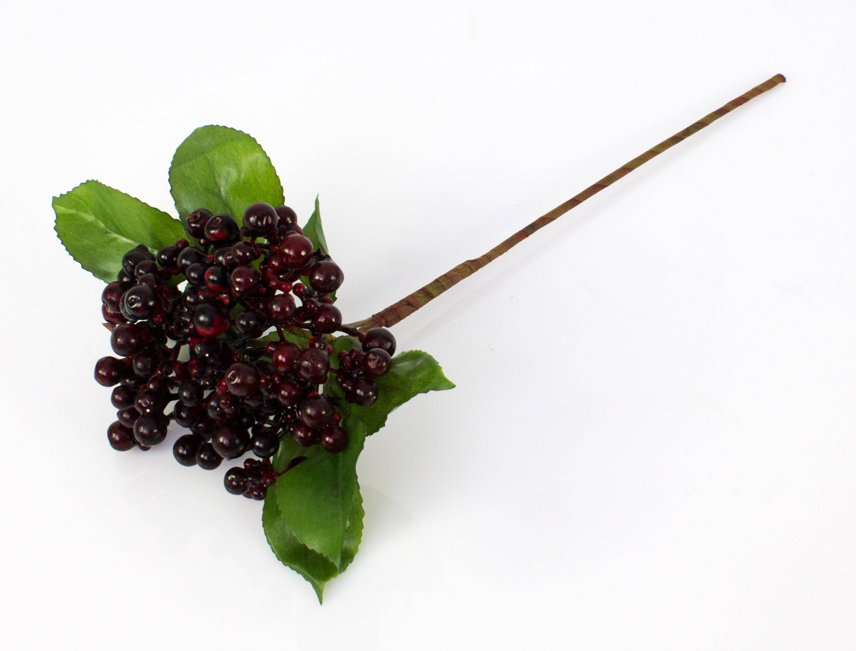 Beautiful artificial berry branch in berry colour burgundy. The branch has a total length of approx. 30 cm.