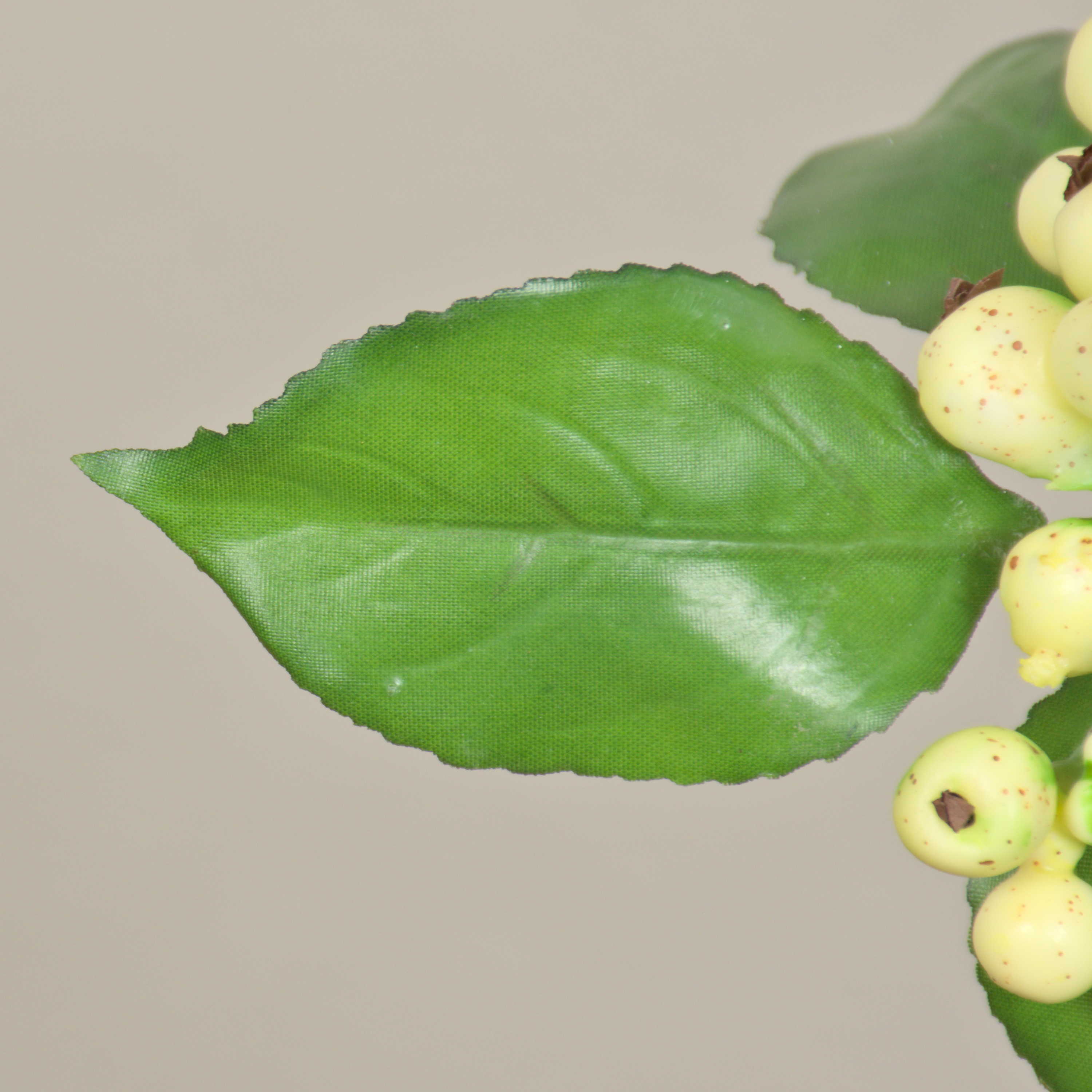 - With cream-green berries and 2 leaf branches crafted from high-quality material