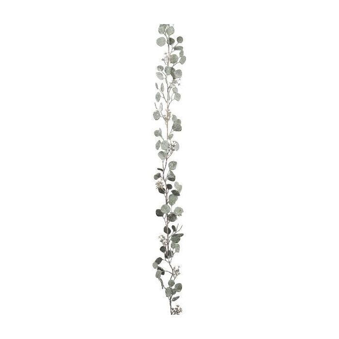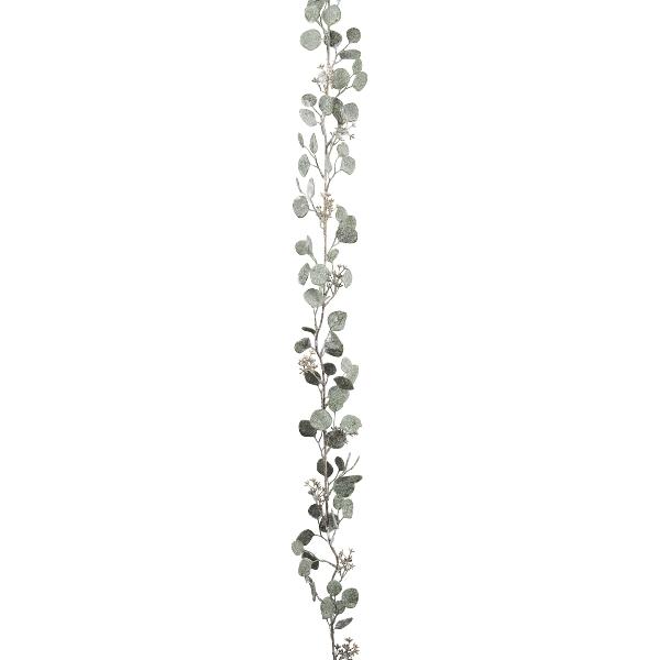 Artificial eucalyptus garland KEMNIR with flowers, snow-covered, white-green, 6ft/175cm