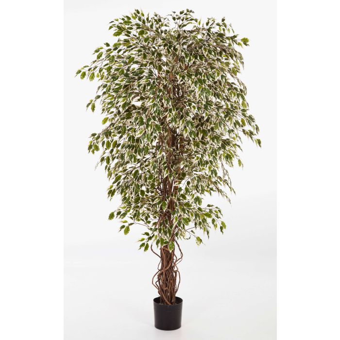 Artificial Ficus tree DAKU, natural stems, green-white, 3ft/90cm