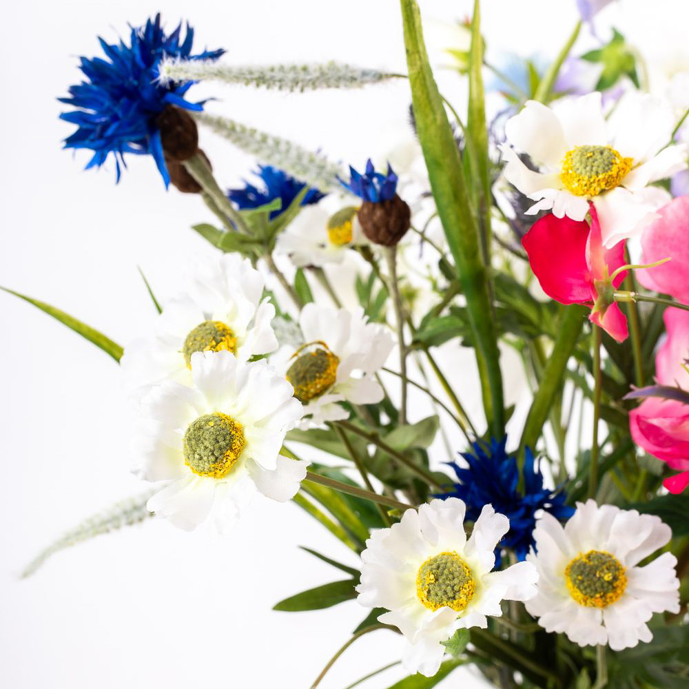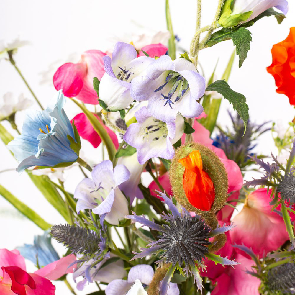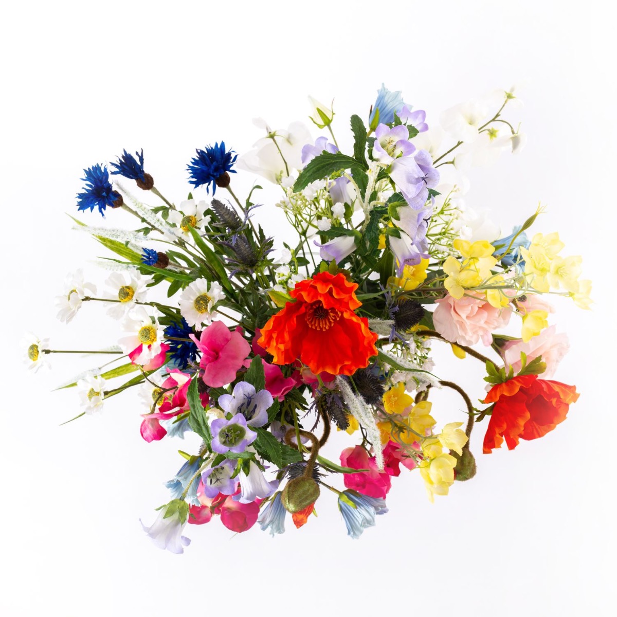 The different flower shapes in the CINDANA bouquet create a cheerful, playful look. Almost every colour can be found in this bouquet, just like the flowers we find in fields in summer. With its attention to detail, this bouquet is almost indistinguishable from real flowers. You can recreate this joy year after year and enjoy it for a long time with very little care.