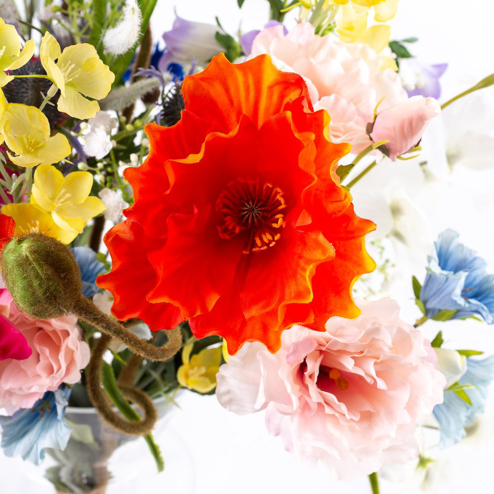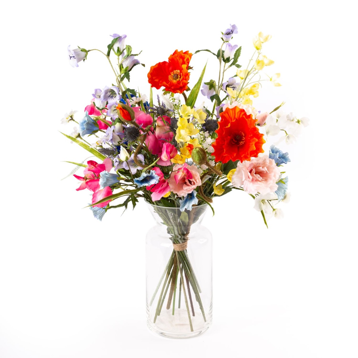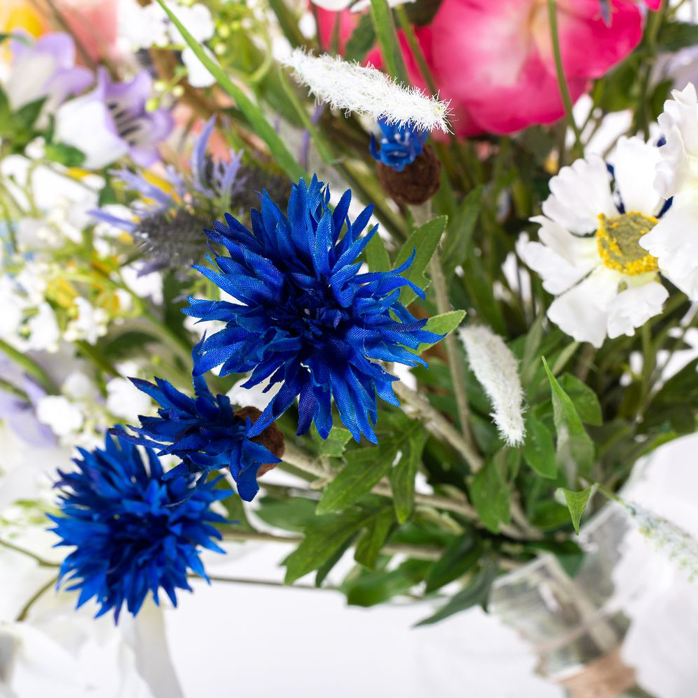The different flower shapes in the CINDANA bouquet create a cheerful, playful look. Almost every colour can be found in this bouquet, just like the flowers we find in fields in summer. With its attention to detail, this bouquet is almost indistinguishable from real flowers. You can recreate this joy year after year and enjoy it for a long time with very little care.