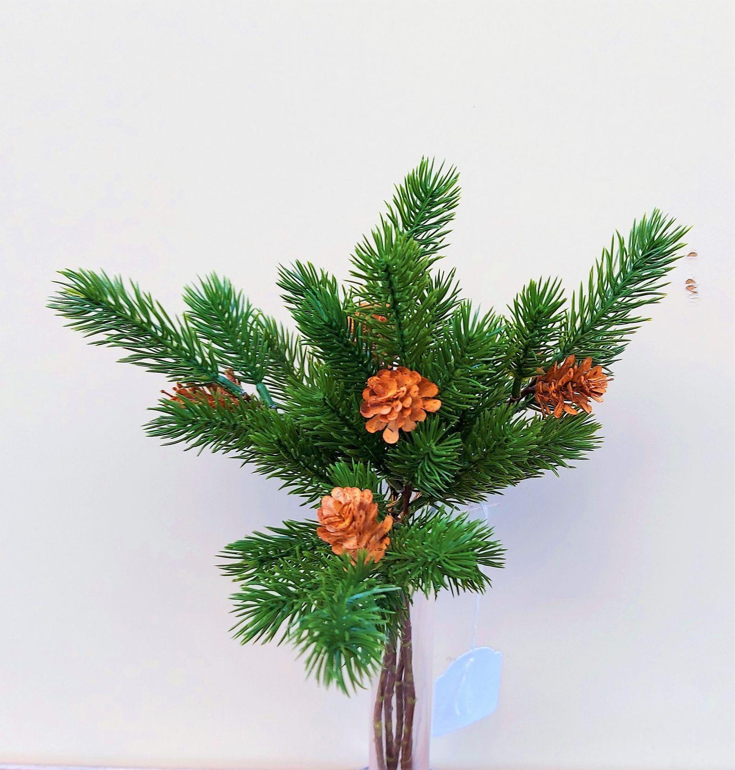Artificial fir branches BERNAHE in a bunch, with cones, green, 14"/35cm