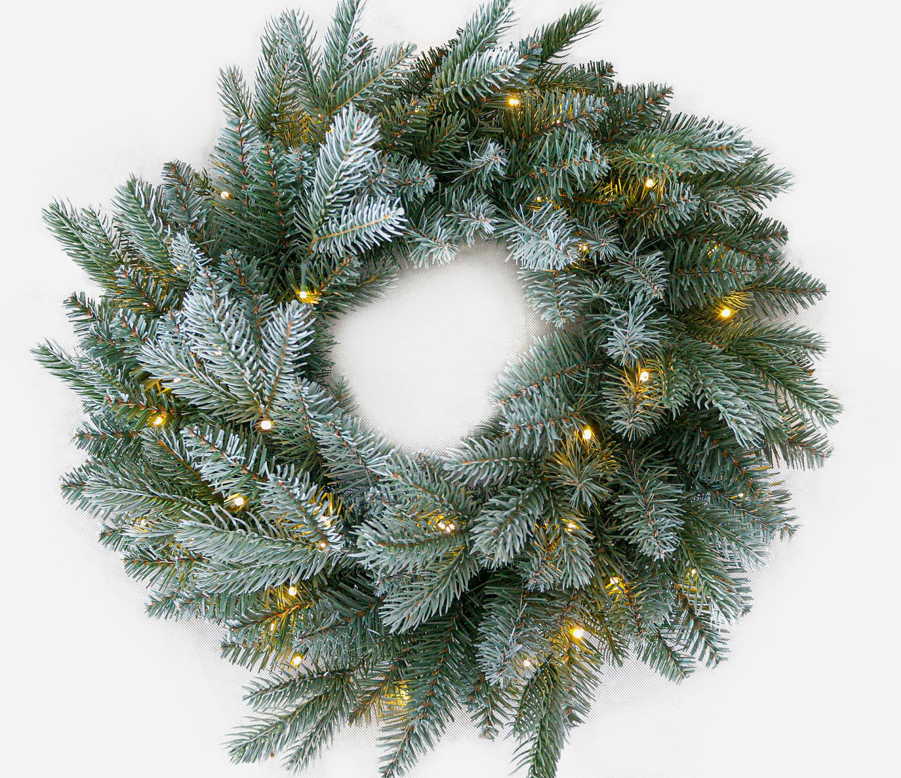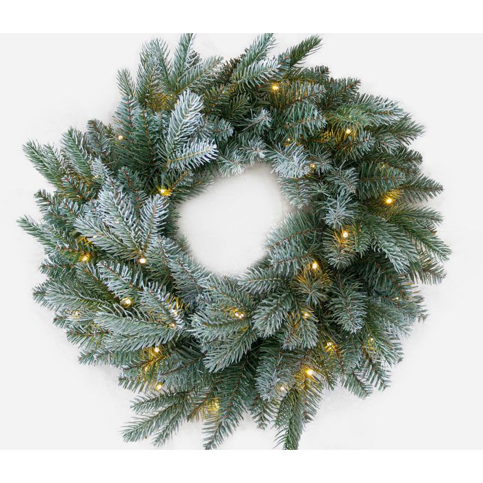 - Artificial frosted wreath with many LEDs for your individual decoration