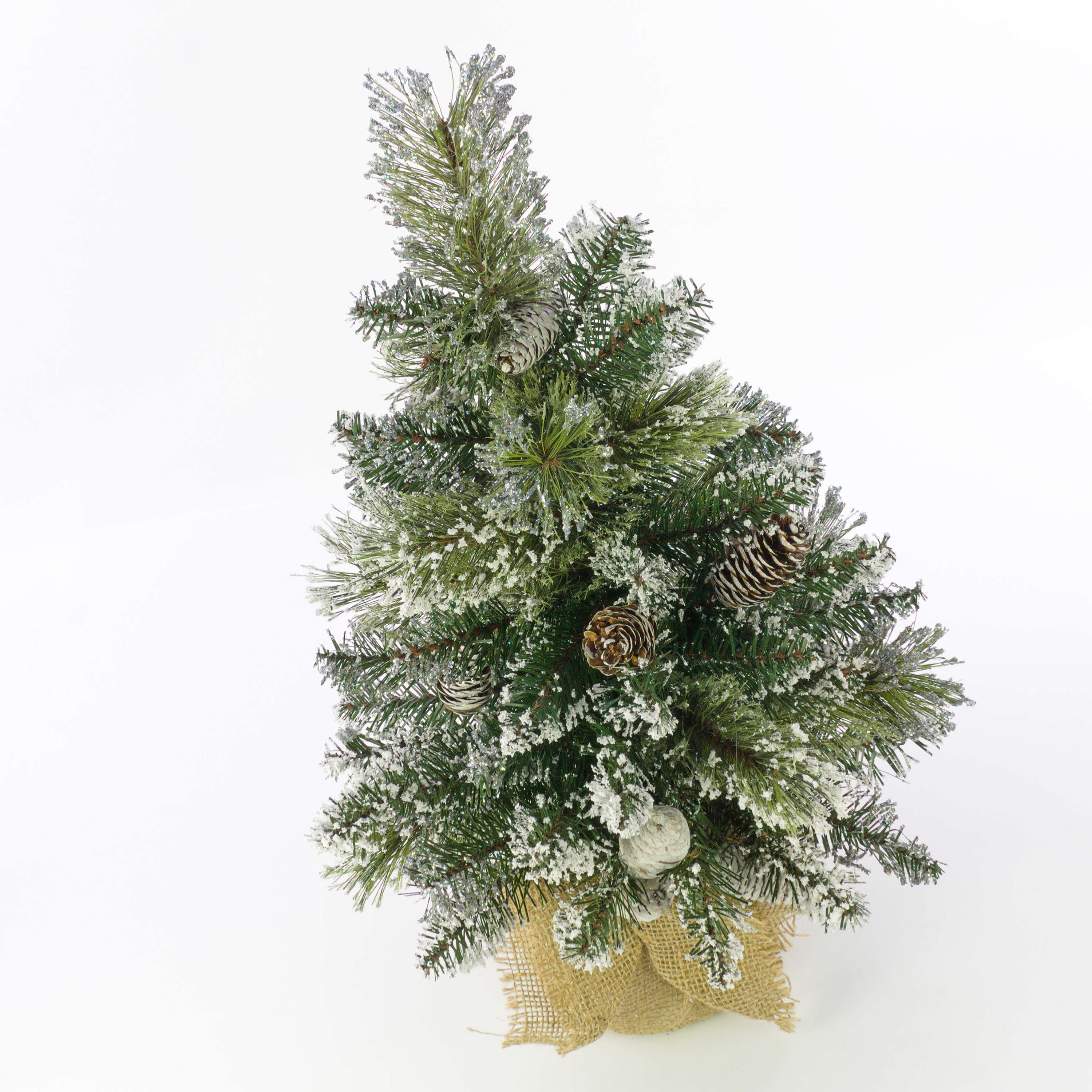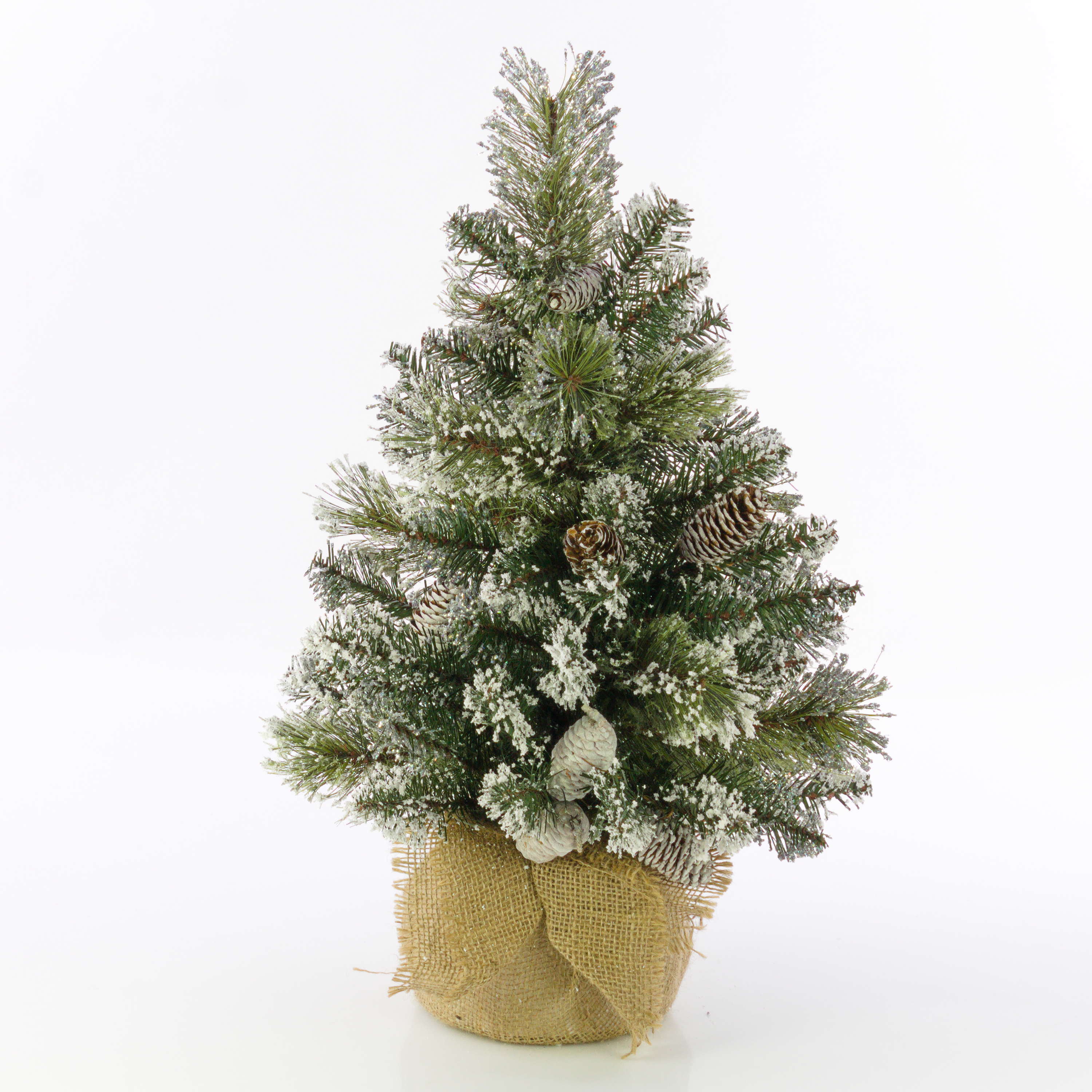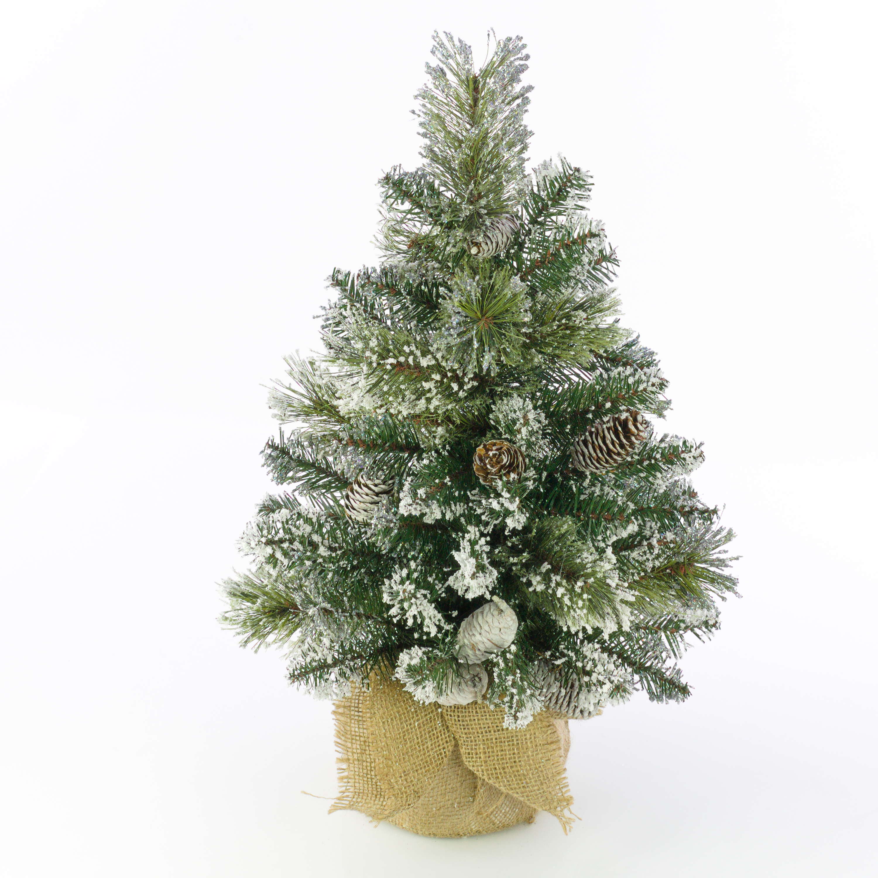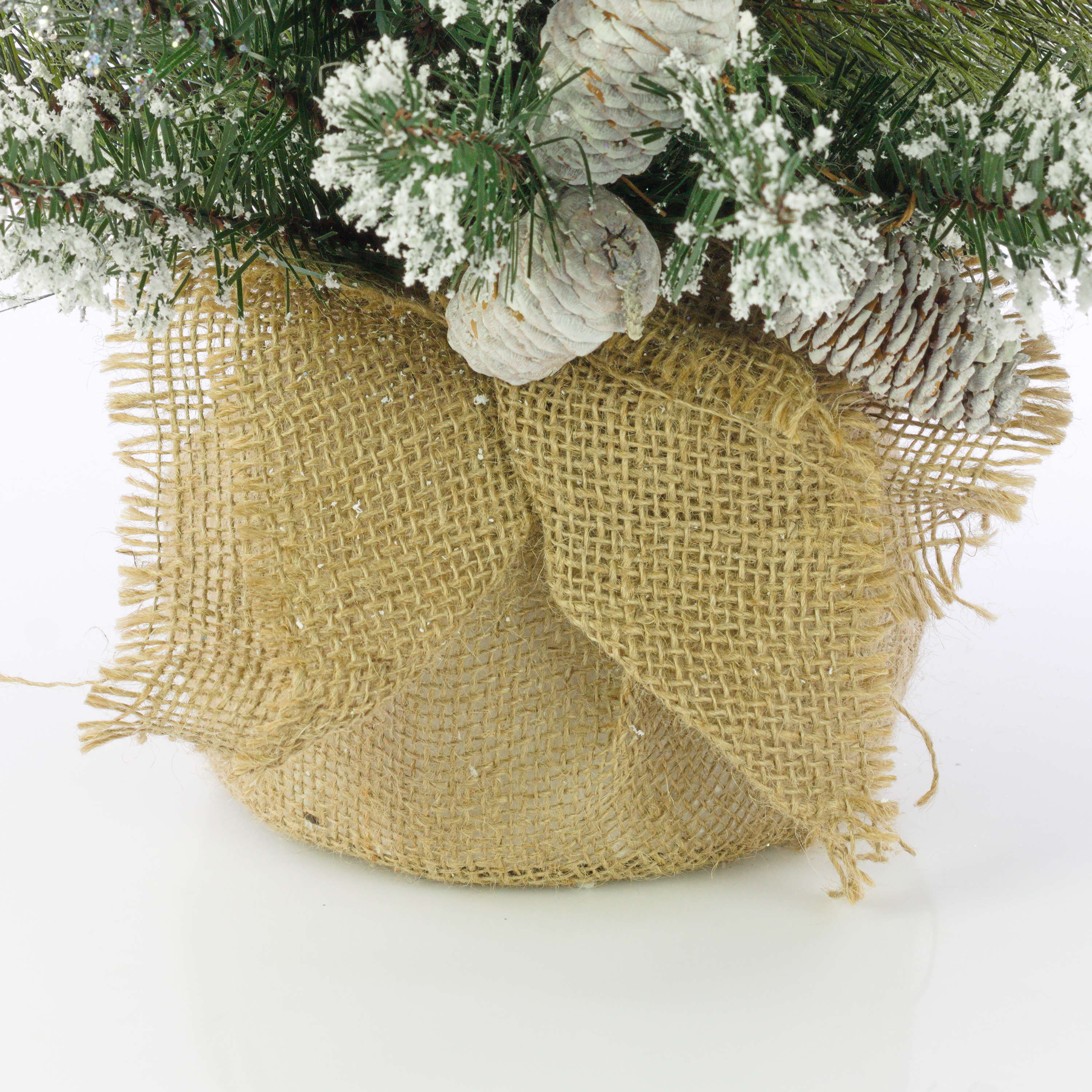 Artificial Fir tree RIGA, cones, jute bag, white, 24"/60cm, Ø 16"/40cm