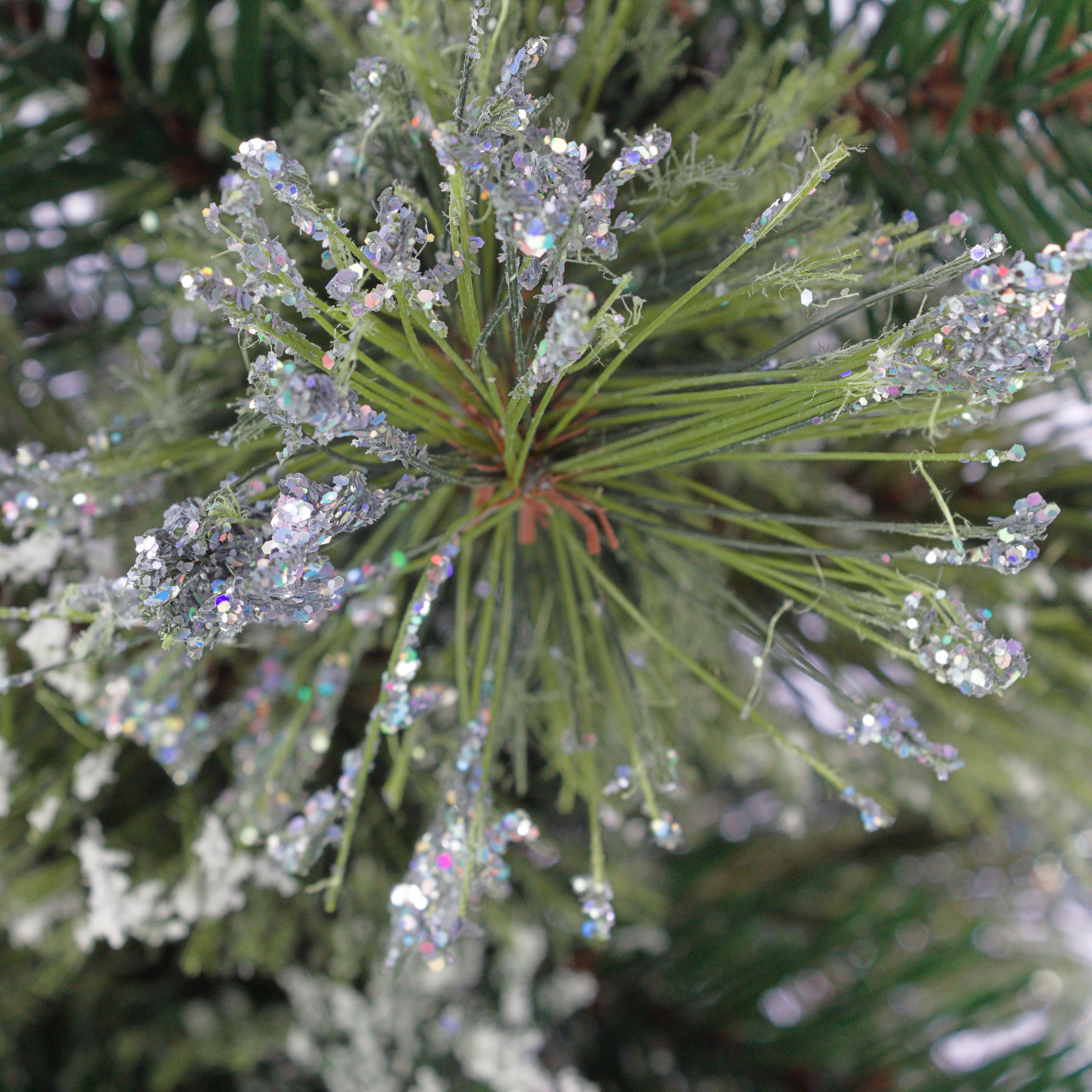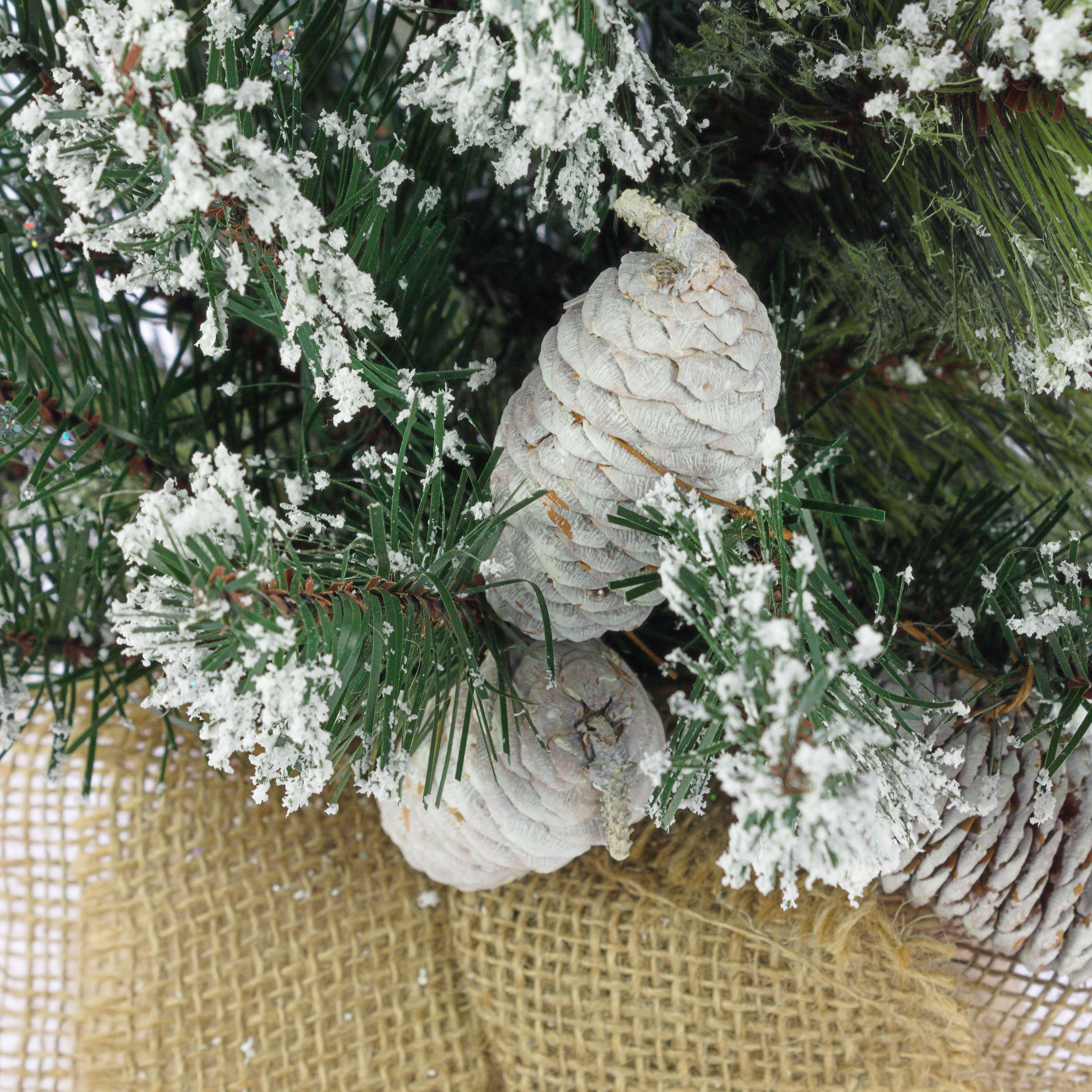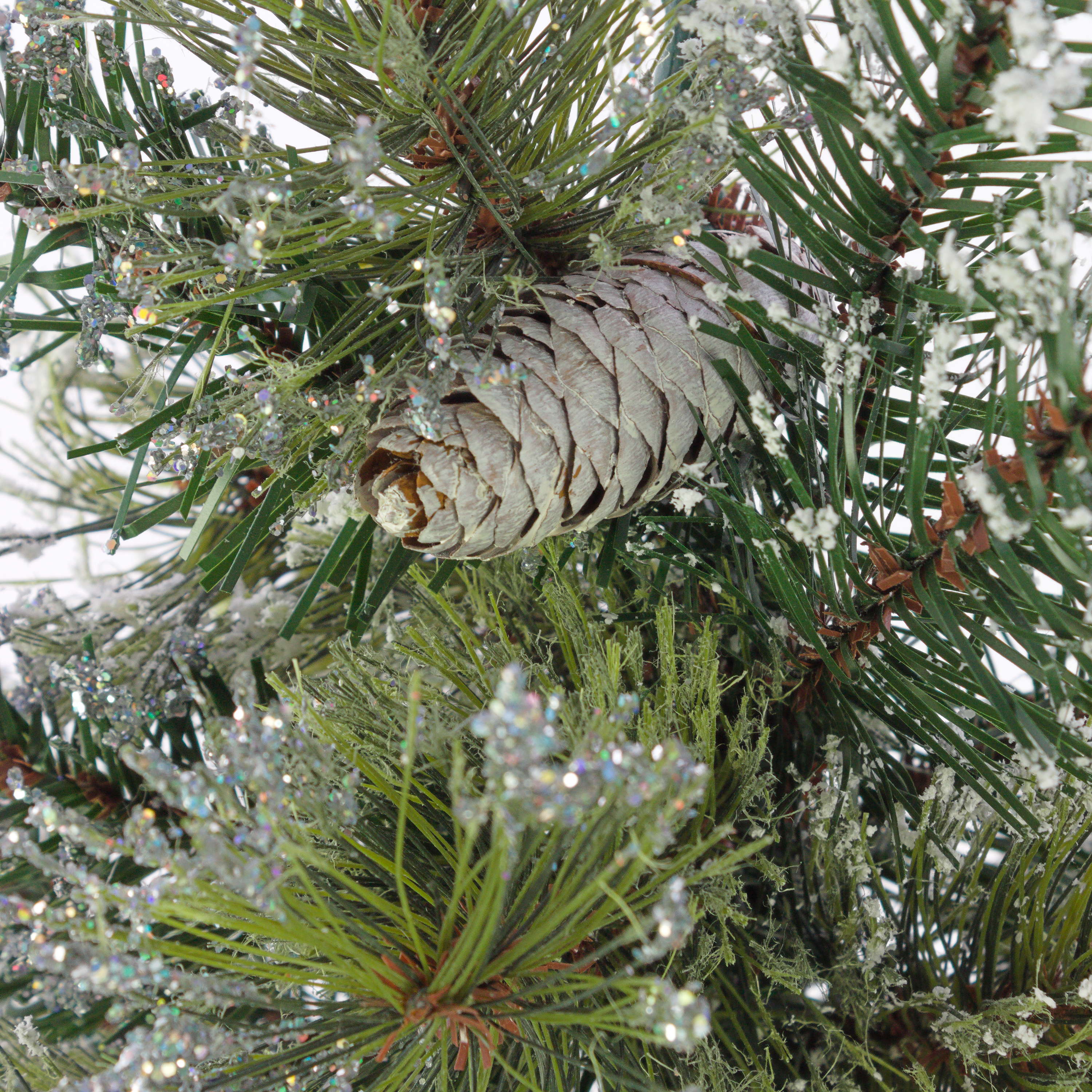 - Approx. 56 green artificial branches with many pine cones and glitter, firmly attached to the trunk