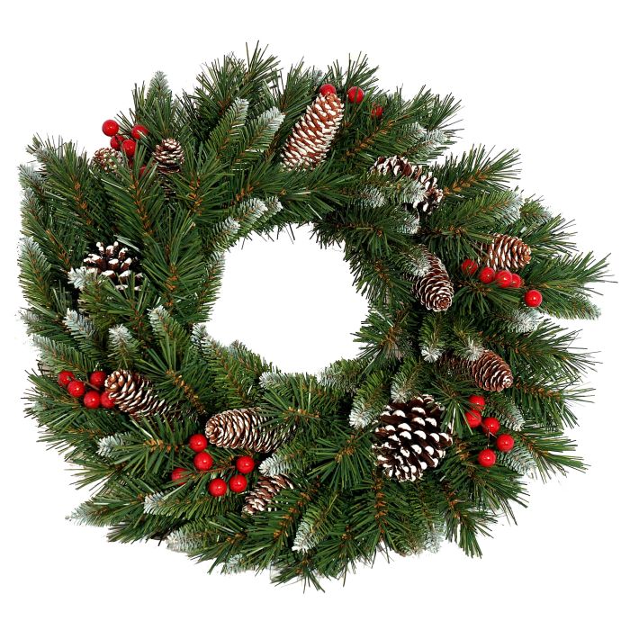 - With cones, berries, artificial snow and 125 needle branches made of high quality PVC material