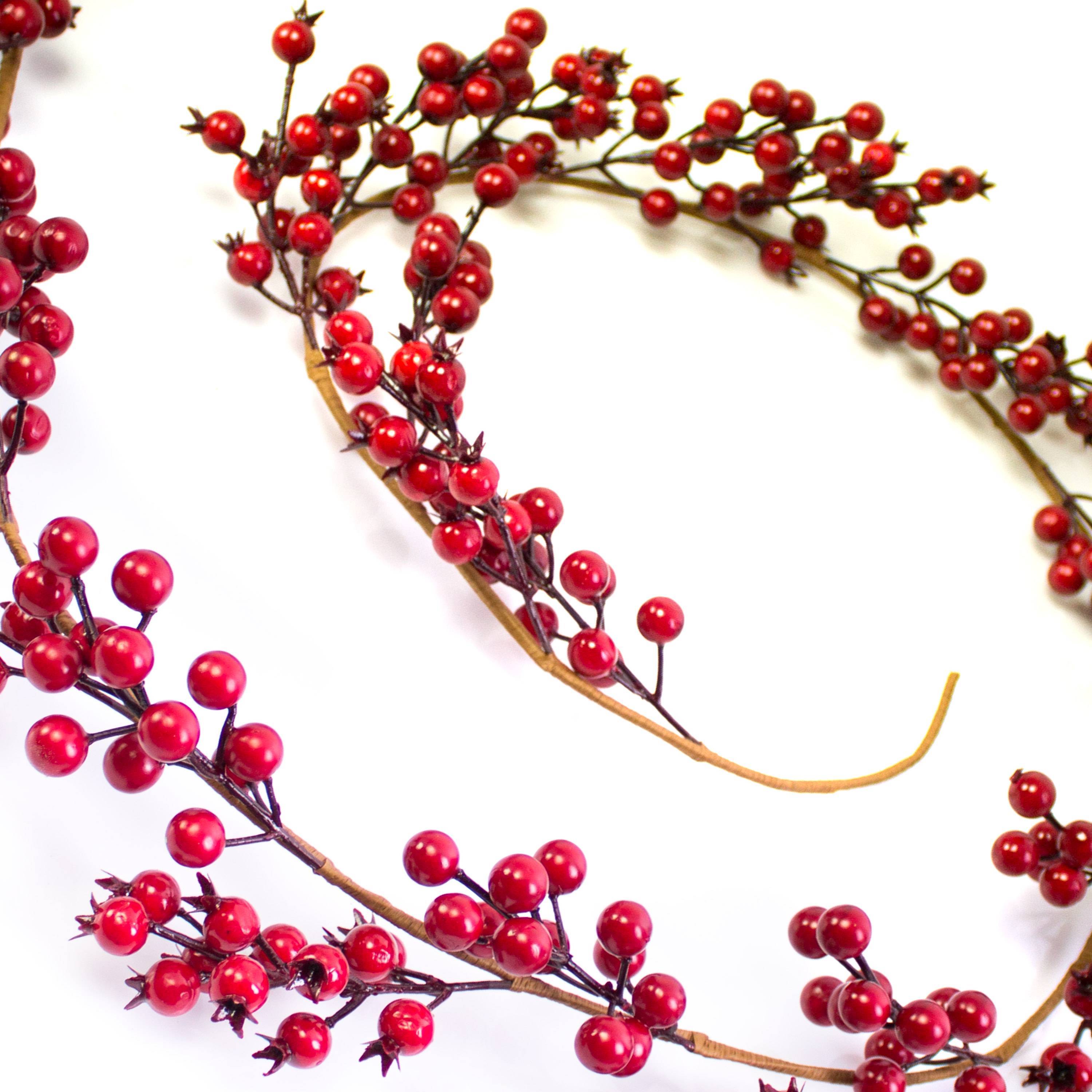 Artificial autumn and Christmas garland GASIRA with red berries. This garland measures approx. 6ft/180 cm in length and is ideally suited for arrangements and bouquets.