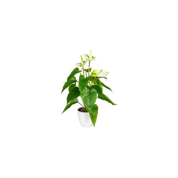 Artificial flamingo flower PLOVIR in decorative pot, roots, white-green, 16"/40cm