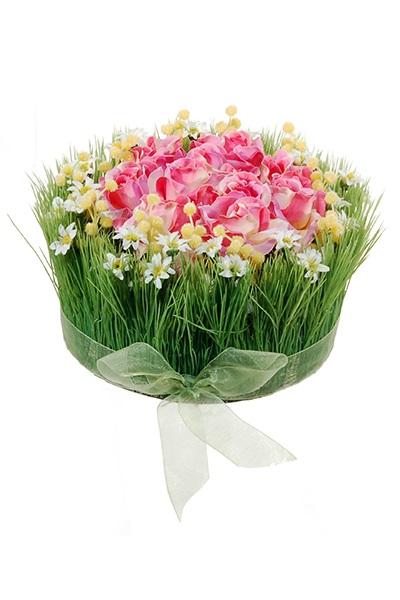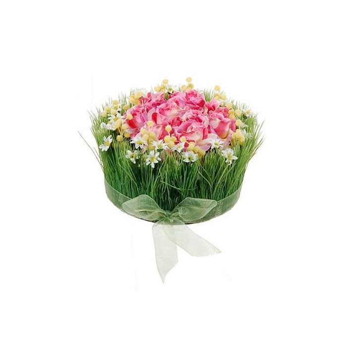 Plastic flower arrangement of roses and grass HAULANI