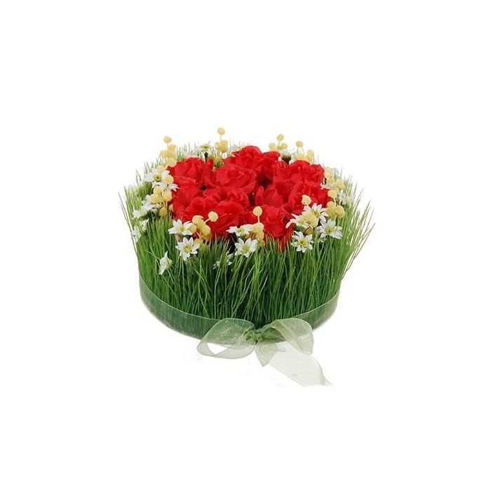 Artificial flower arrangement of roses and grass HAULANI, red-white, 4.7"/12cm, Ø 8"/20cm