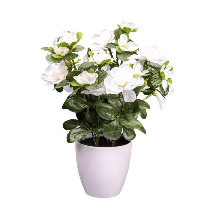 Artificial flower Azalea FRALVI in decorative pot, white, 10"/26cm