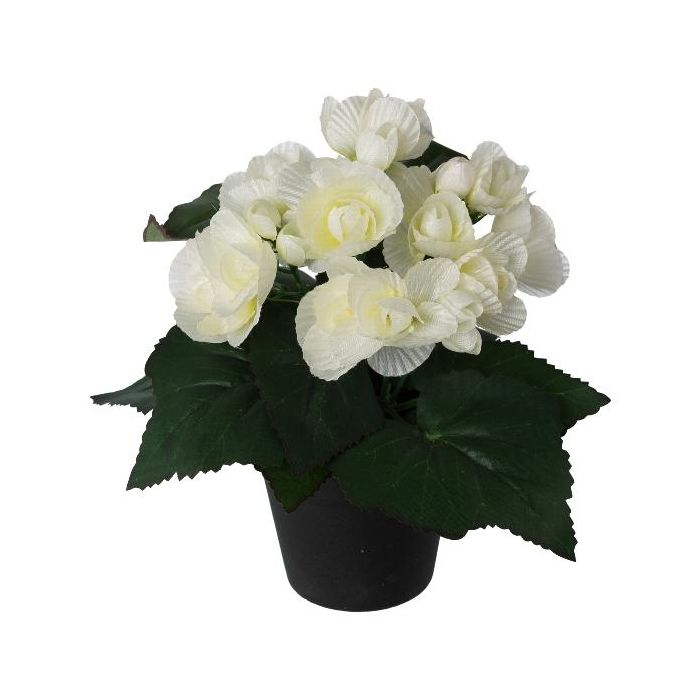 Artificial flower Begonia KELTO in decorative pot, white, 10"/25cm