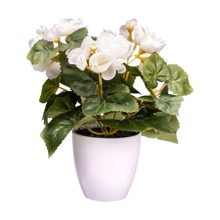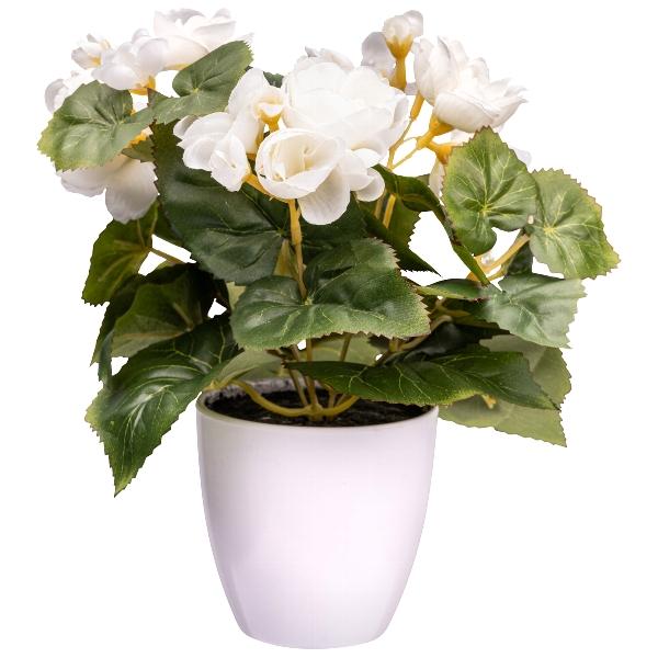 Artificial flower Begonia SYLINA, white decorative pot, cream, 10"/25cm