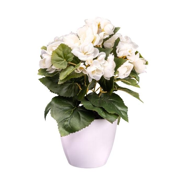 Artificial flower Begonia SYLINA, white decorative pot, cream, 12"/30cm