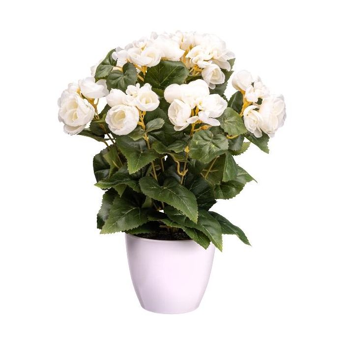 Artificial flower Begonia SYLINA, white decorative pot, cream, 14"/35cm