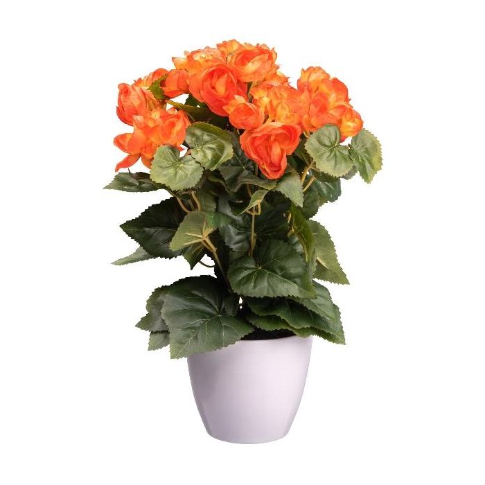 Artificial flower Begonia SYLINA, white decorative pot, orange, 14"/35cm