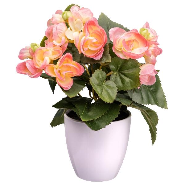 Artificial flower Begonia SYLINA, white decorative pot, pink, 10"/25cm