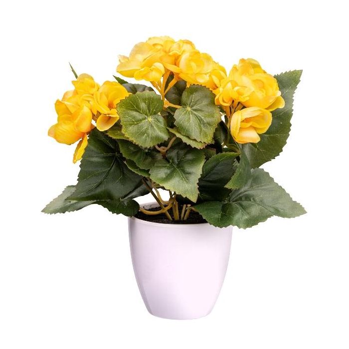 Artificial flower Begonia SYLINA, white decorative pot, yellow, 10"/25cm