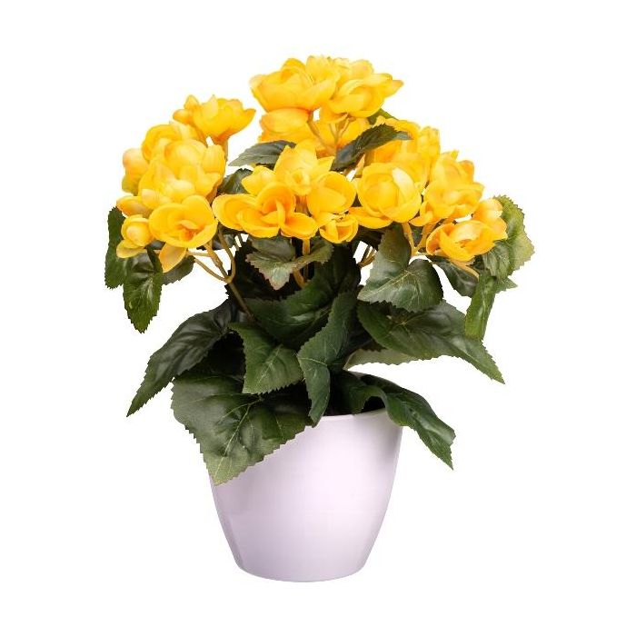 Artificial flower Begonia SYLINA, white decorative pot, yellow, 12"/30cm