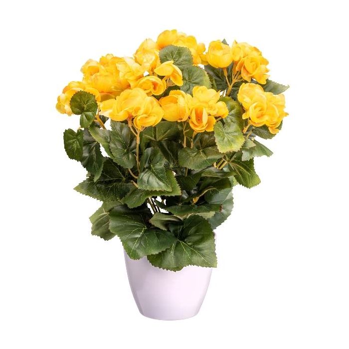 Artificial flower Begonia SYLINA, white decorative pot, yellow, 14"/35cm