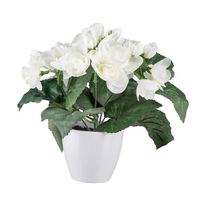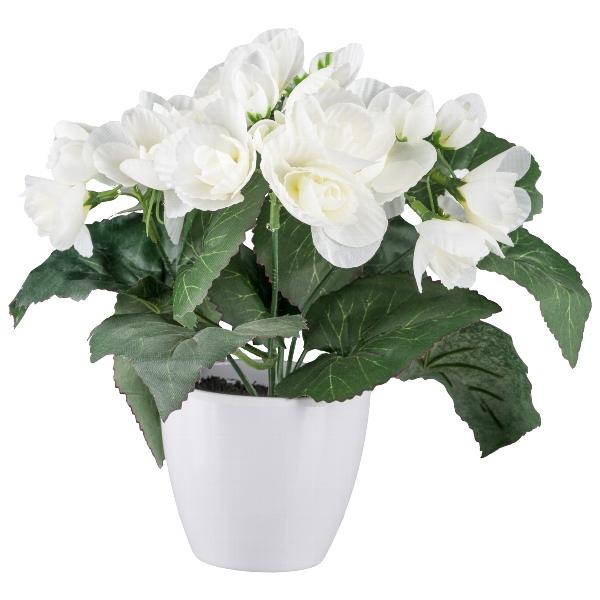 Artificial flower Begonia TROVEN in decorative pot, white, 9"/24cm