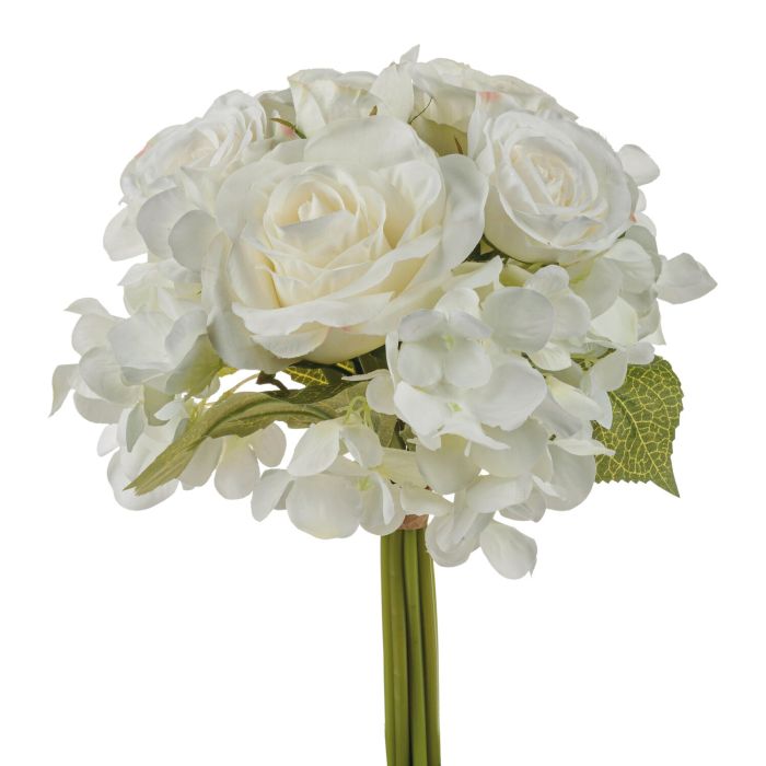 Artificial flower bouquet FOUDILA, roses, hydrangeas, white, 10"/25cm