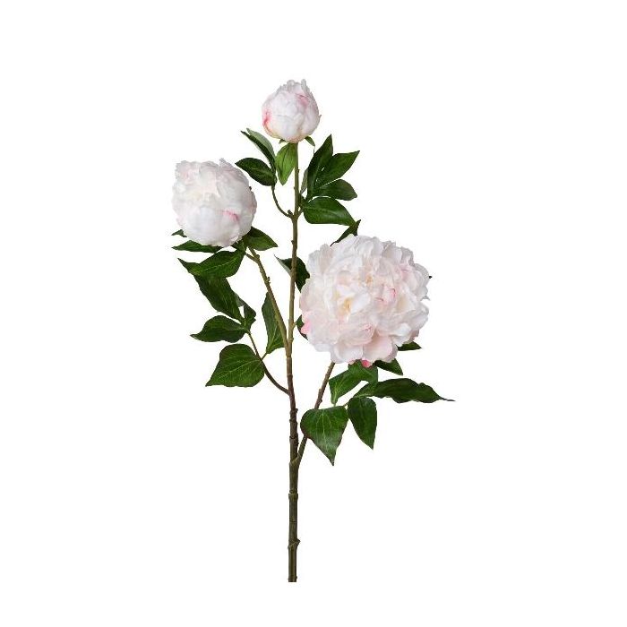 Artificial flower branch Peony CRUNT, white, 33"/85cm