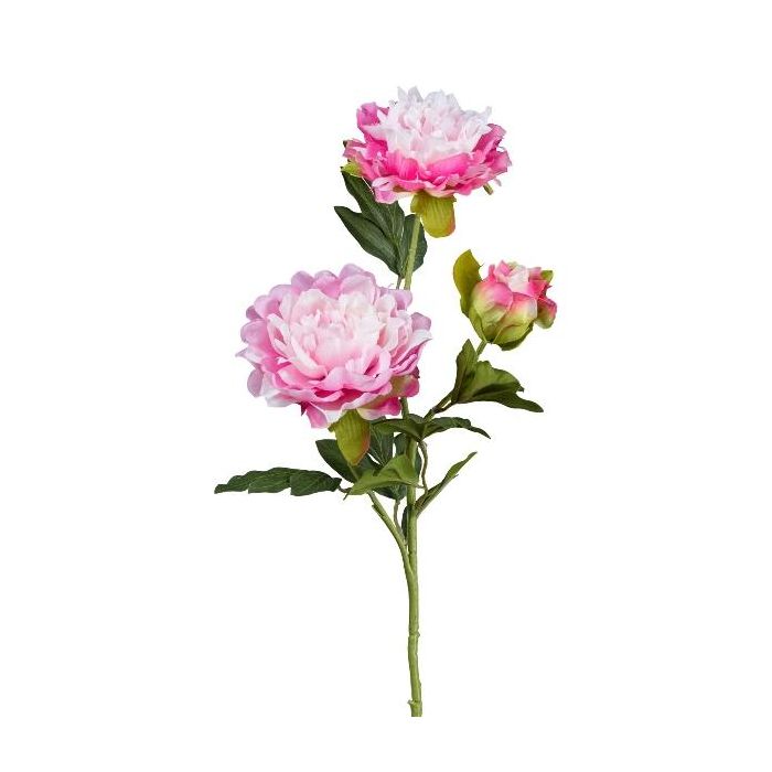 Artificial flower branch Peony SLORMEK, pink-white, 26"/65cm