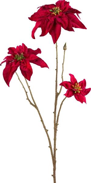 Artificial flower branch Poinsettia VORLIN, red, 26"/65cm