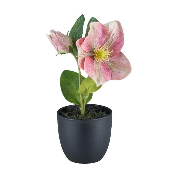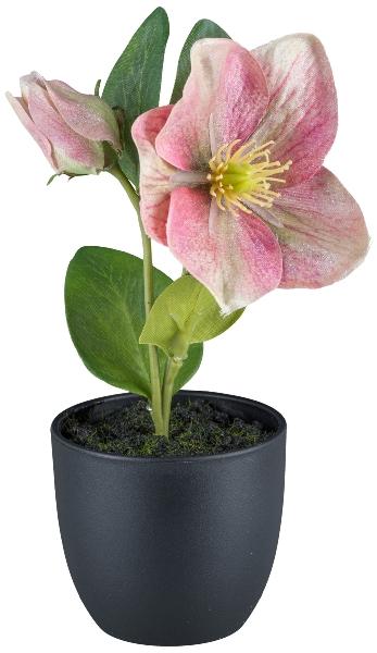 Artificial flower Christmas rose DENDY, decorative pot, pink, 7"/19cm
