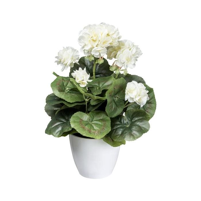 Artificial flower Geranium KLUMOR in melamine planter, cream, 14"/35cm