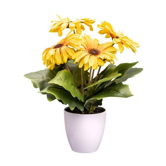 Artificial flower Gerbera KROLVEN in a white decorative pot, yellow, 11"/27cm