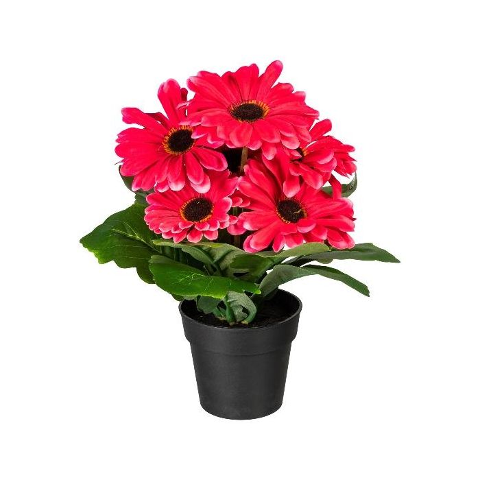 Artificial flower Gerbera KROLVEN in black decorative pot, fuchsia, 11"/27cm