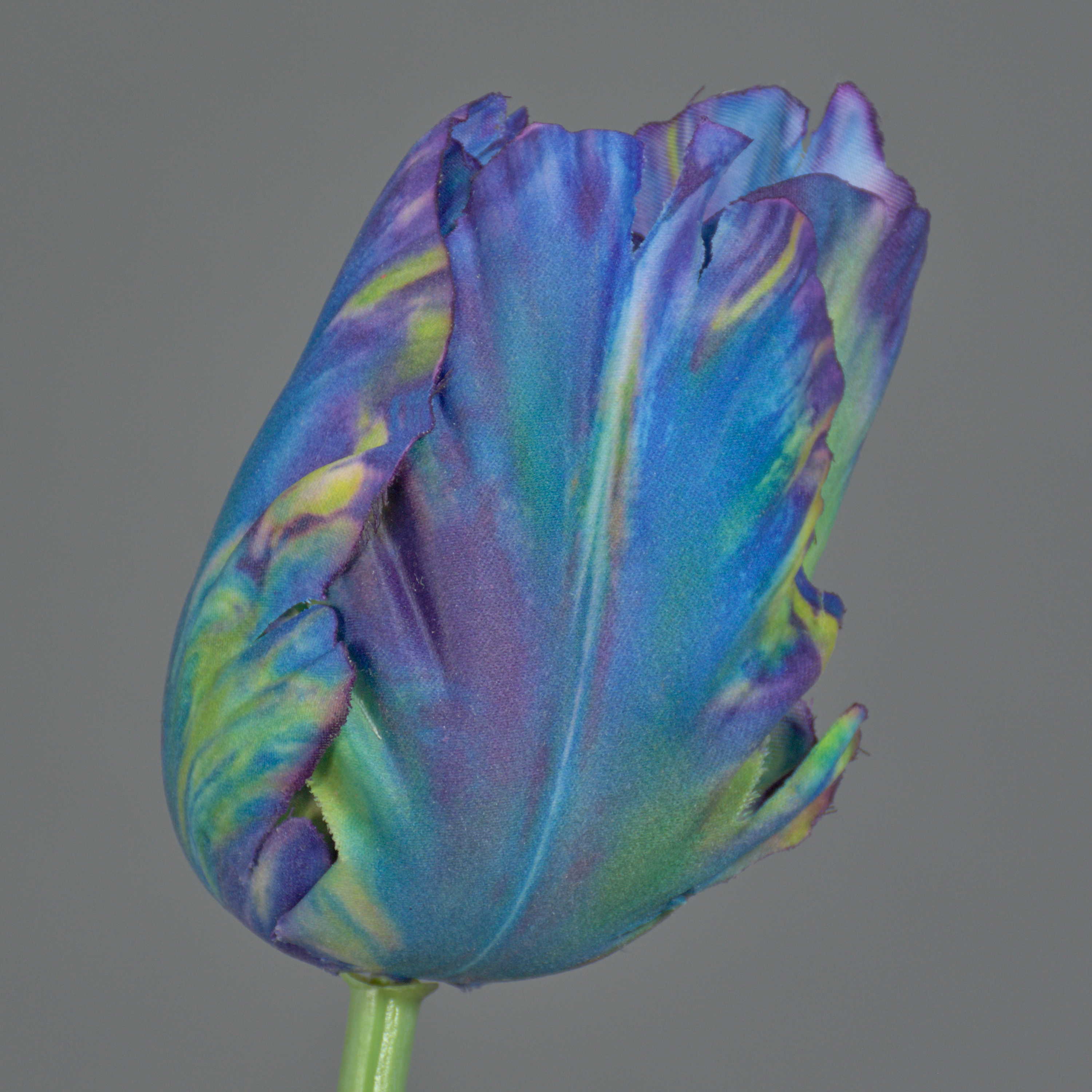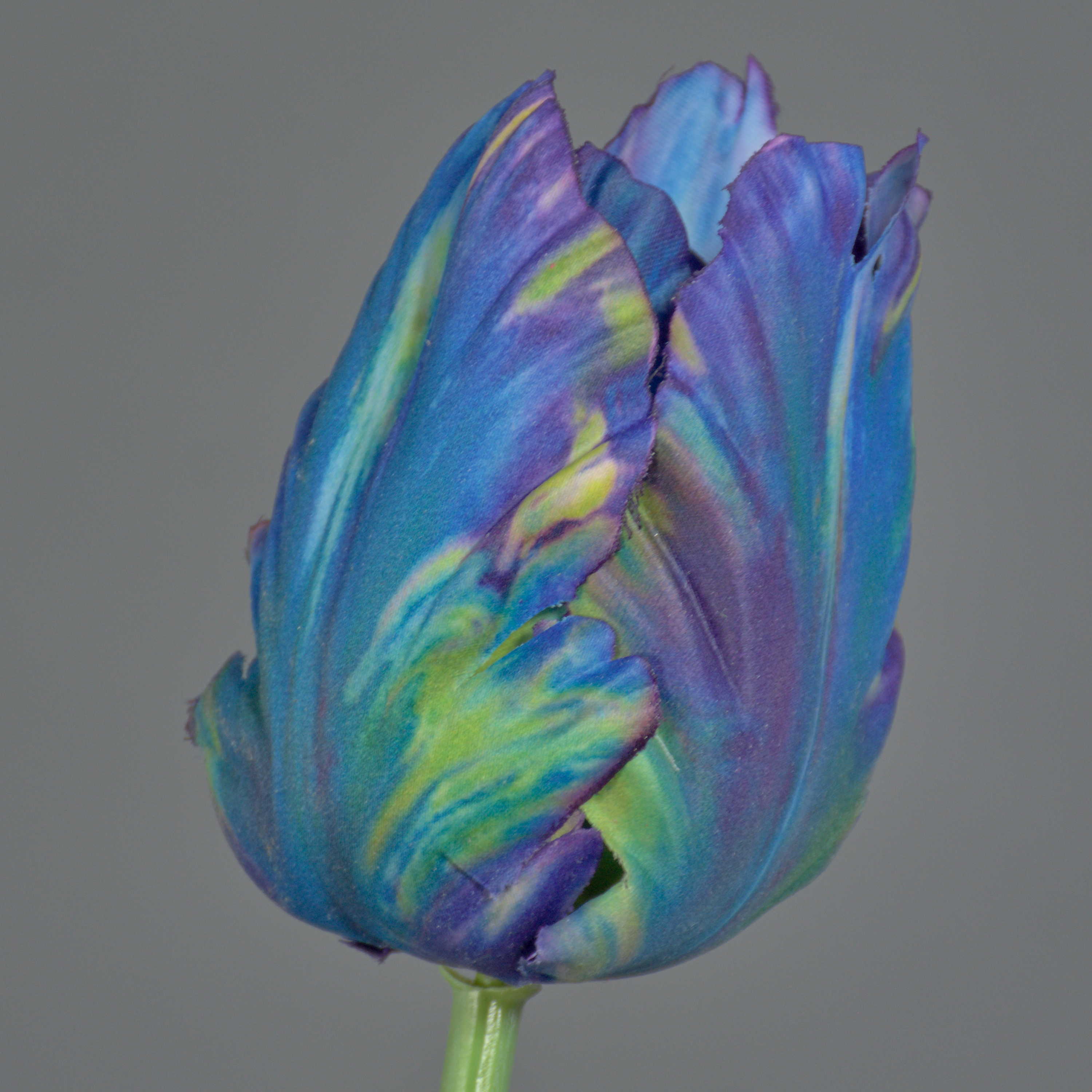 Artificial flower Parrot tulip UAKARI, blue-green, 26"/65cm, Ø2.4"/6cm