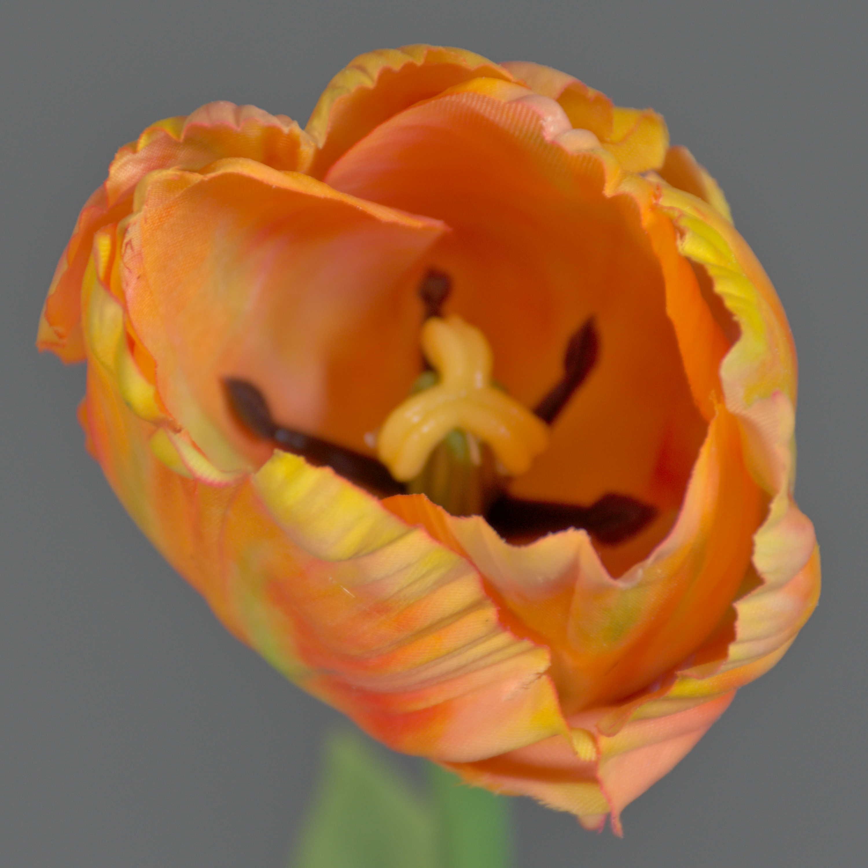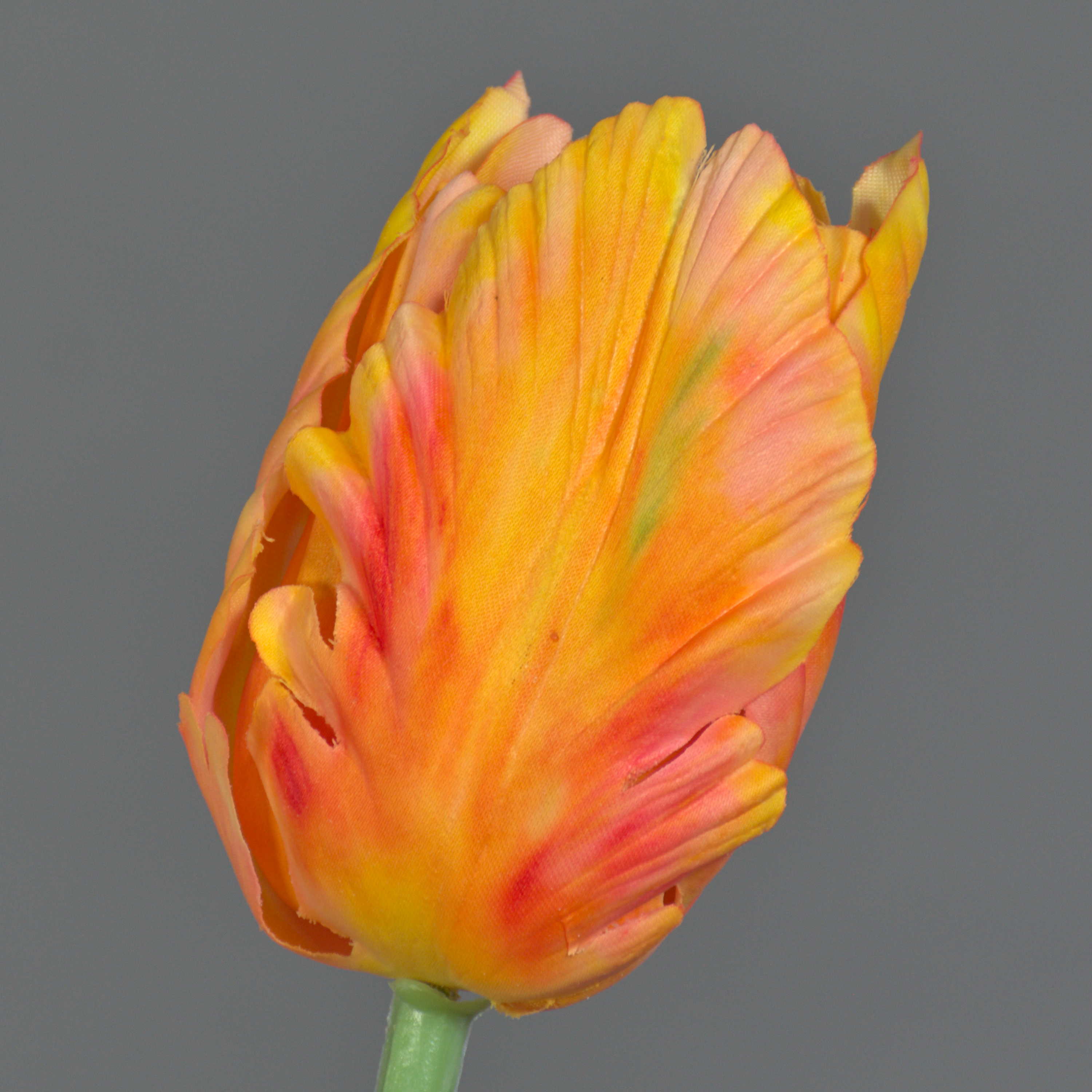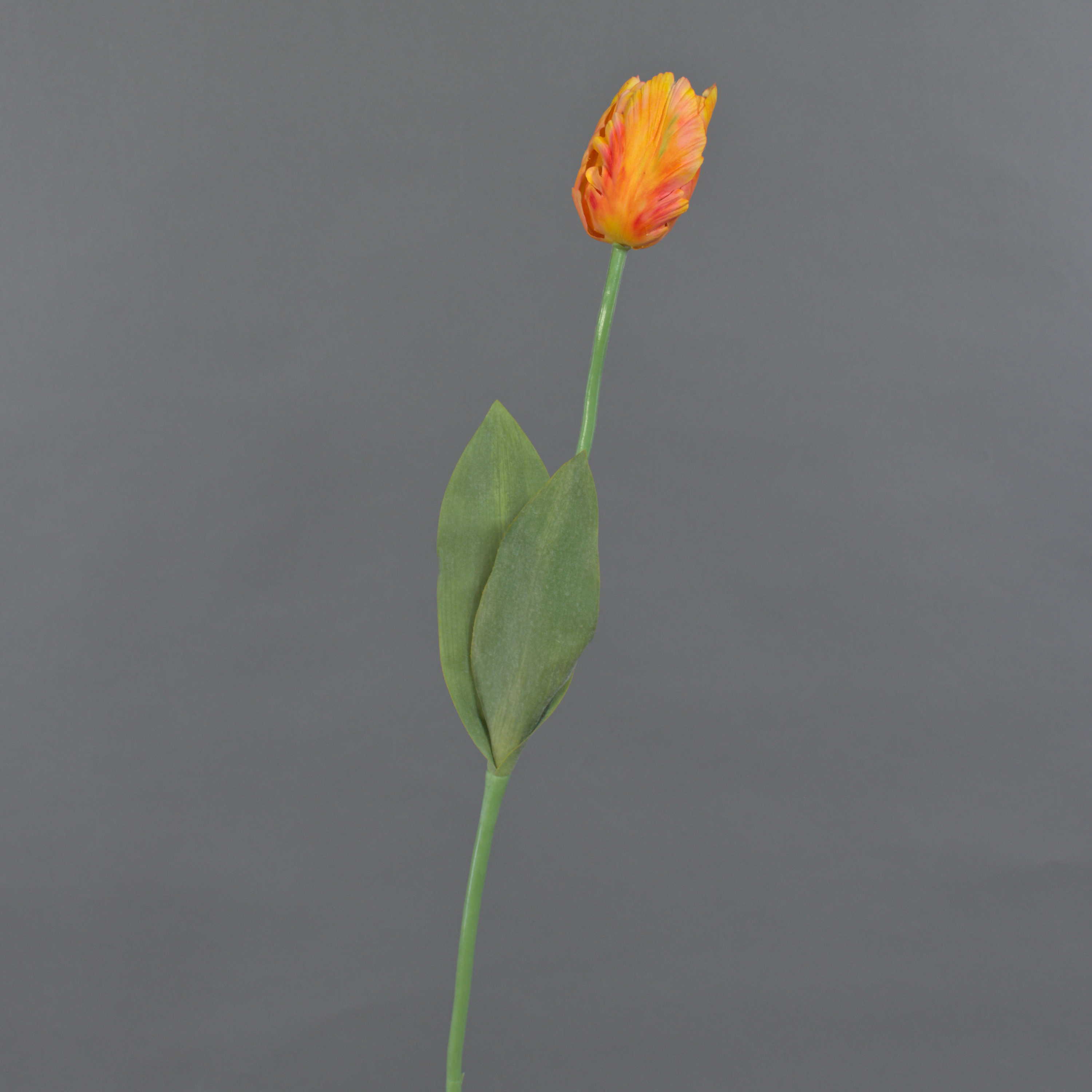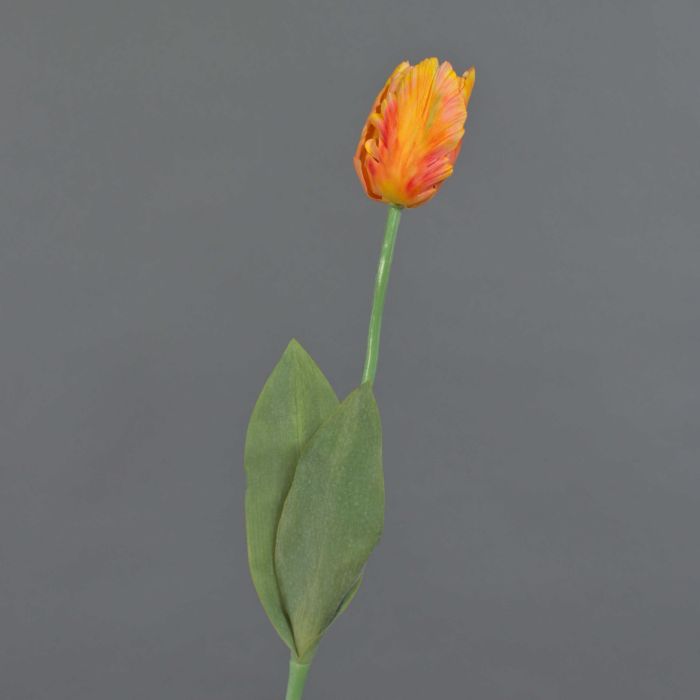 Artificial flower Parrot tulip UAKARI, orange-yellow, 26"/65cm, Ø2.4"/6cm