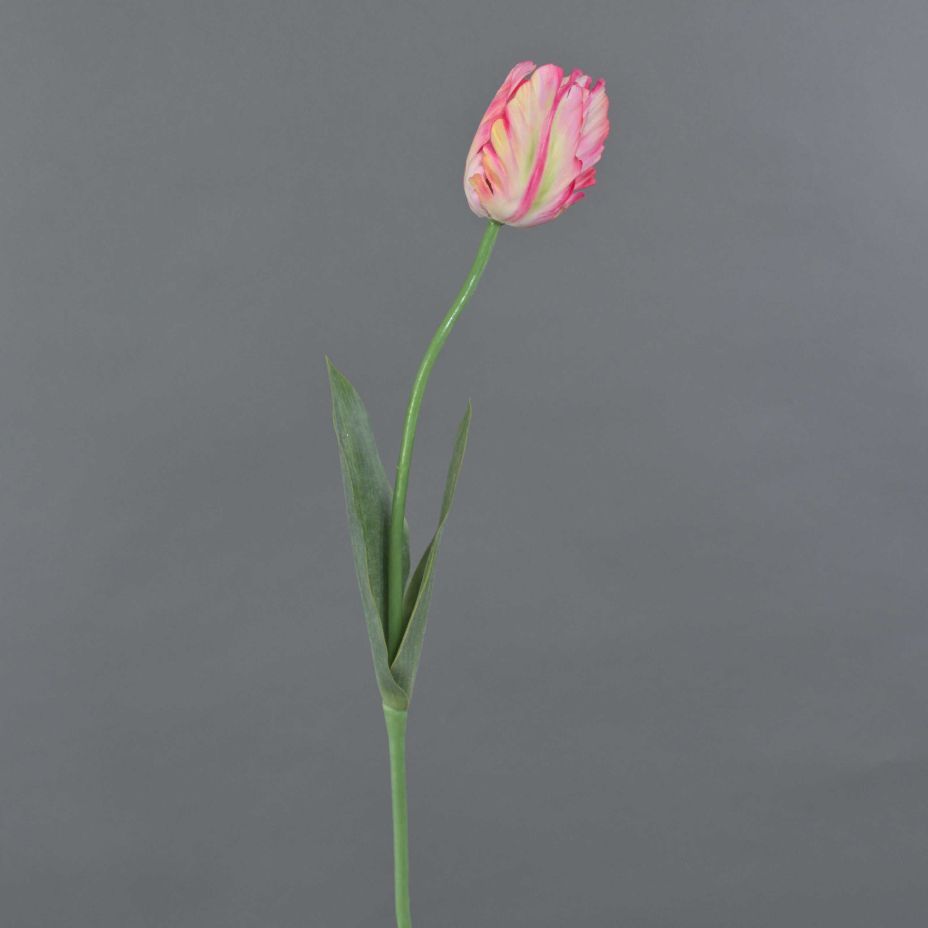 - The natural-feeling petals have the wavy edge typical of a parrot tulip and are characterised by a special surface (real touch), the stem is covered with large leaves