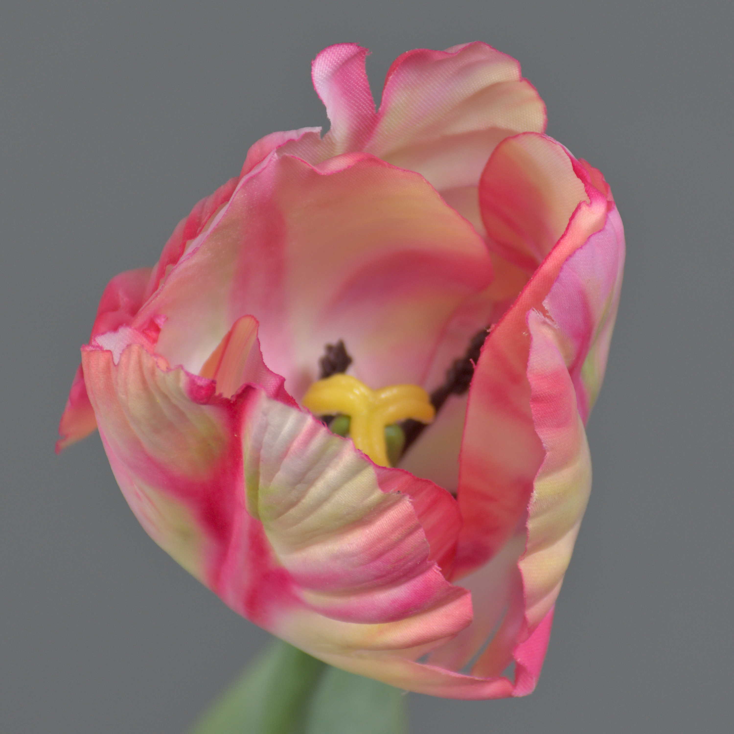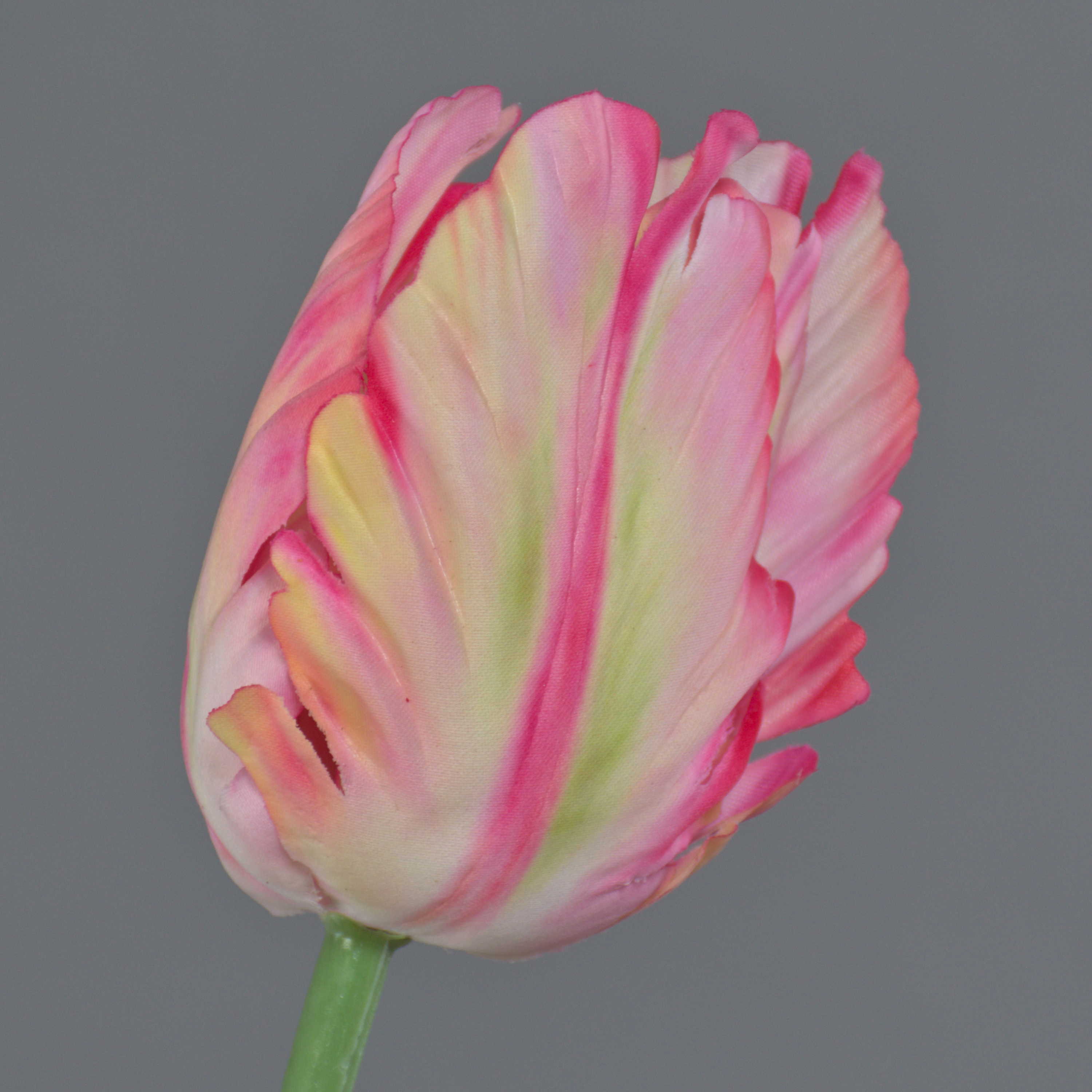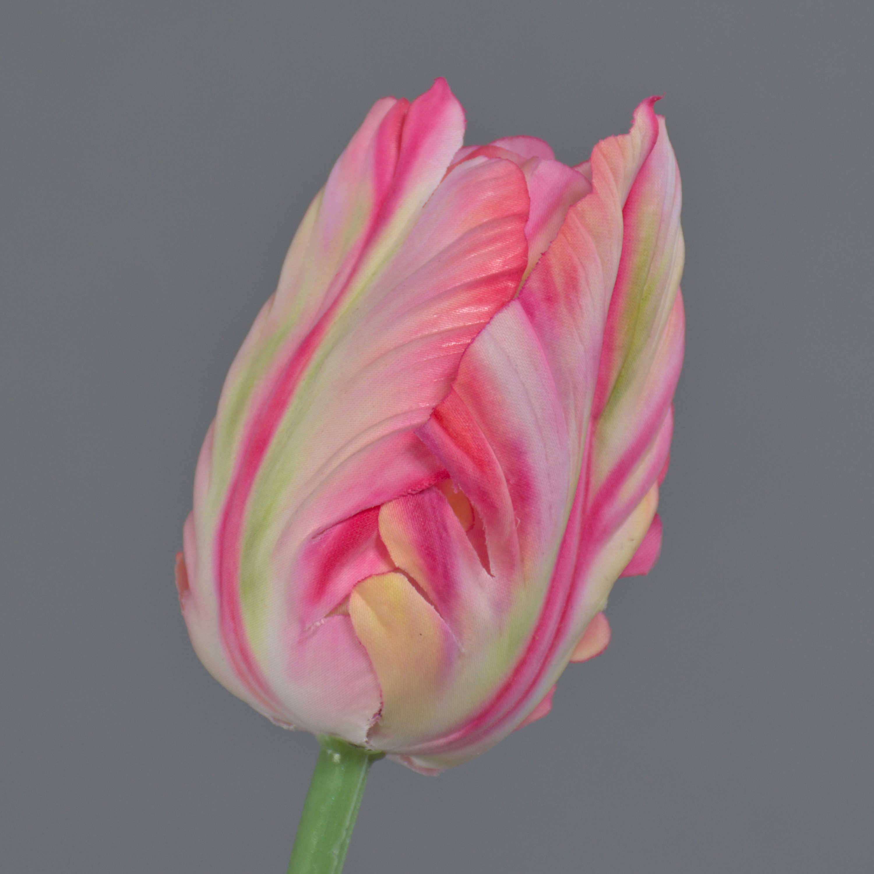 Artificial flower Parrot tulip UAKARI, pink-cream-green, 26"/65cm, Ø2.4"/6cm