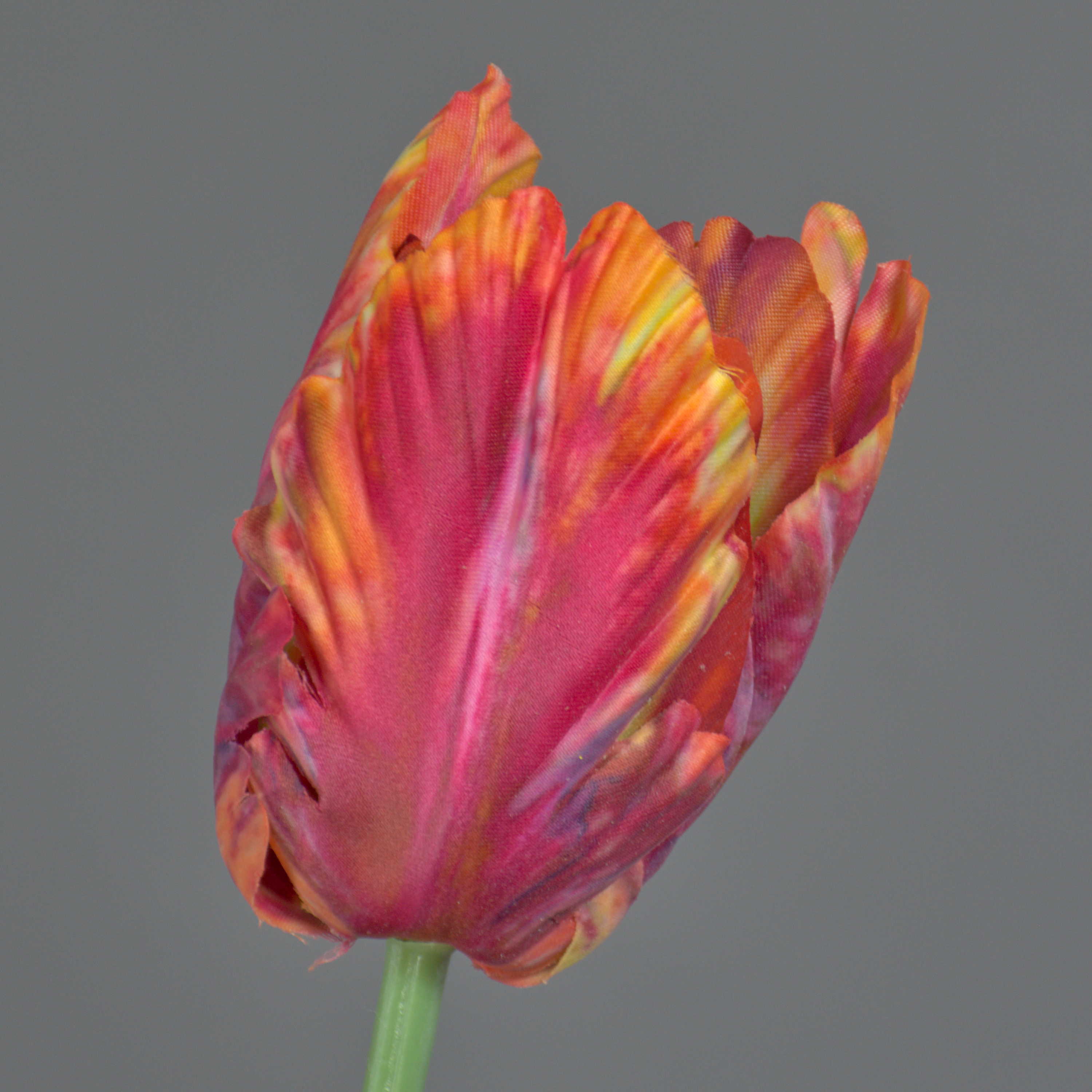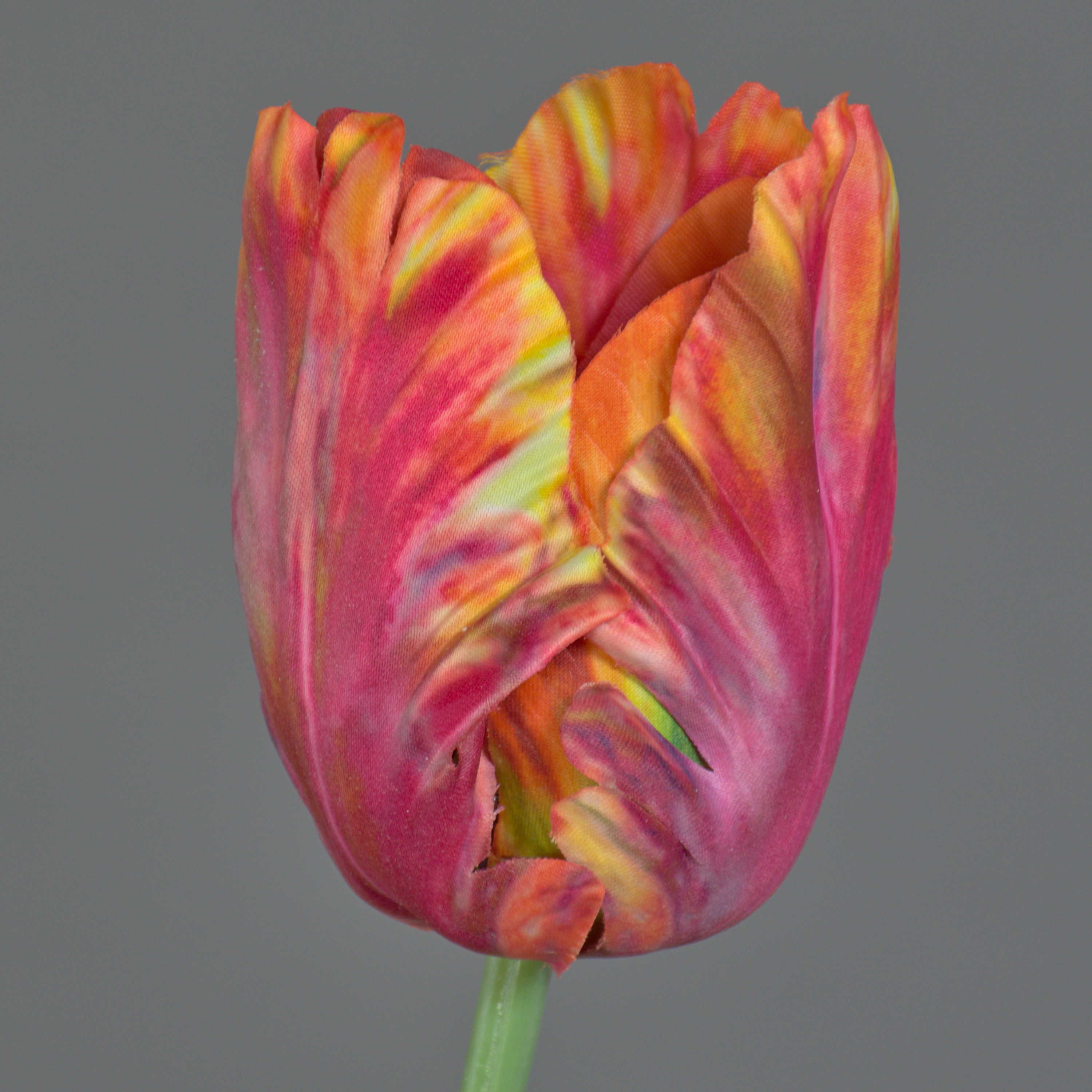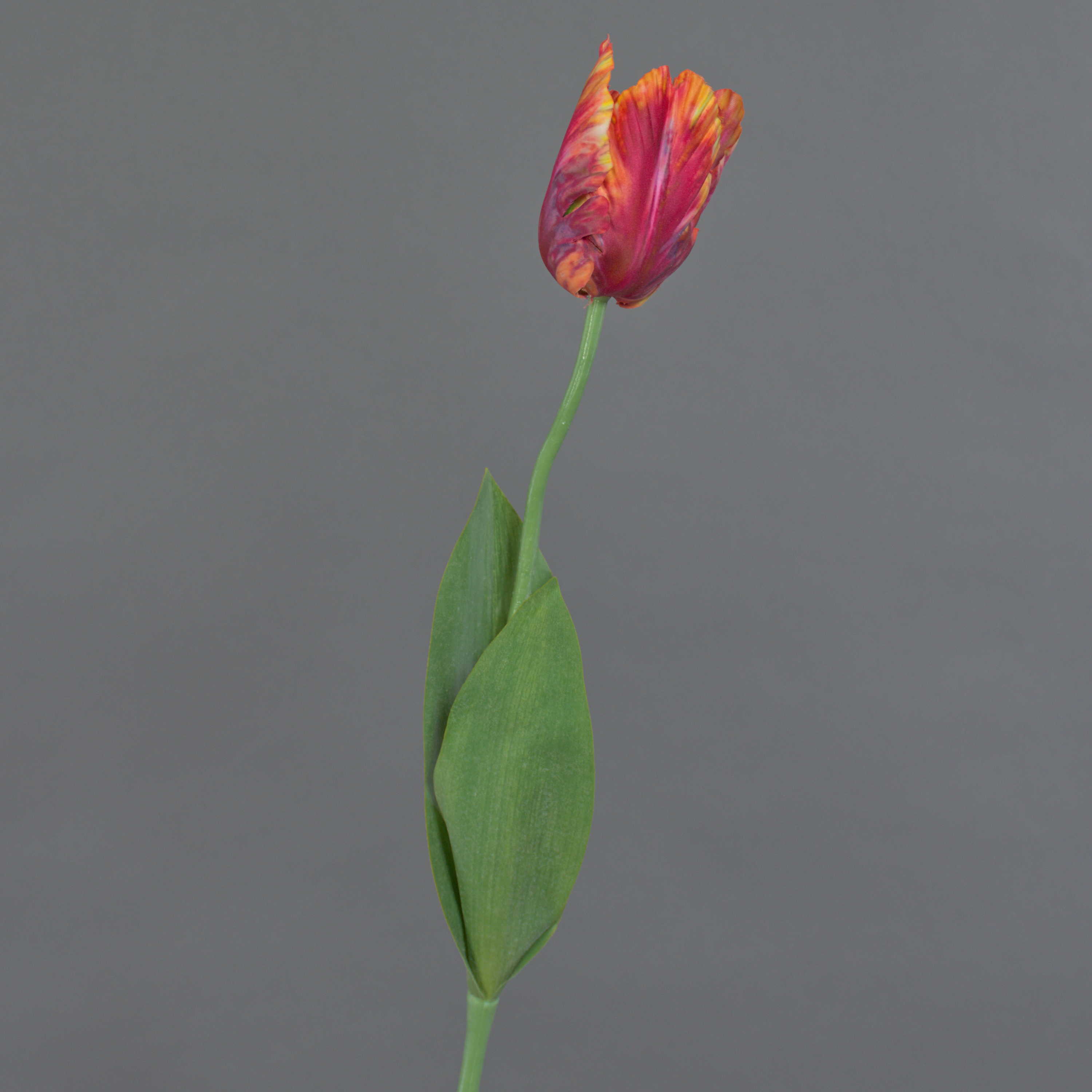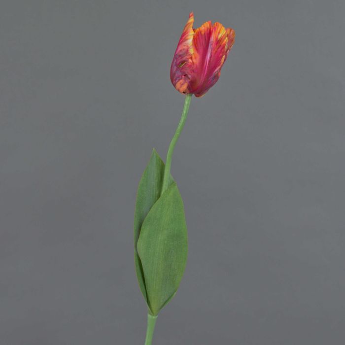 Artificial flower Parrot tulip UAKARI, red-fuchsia-orange-green, 26"/65cm, Ø2.4"/6cm