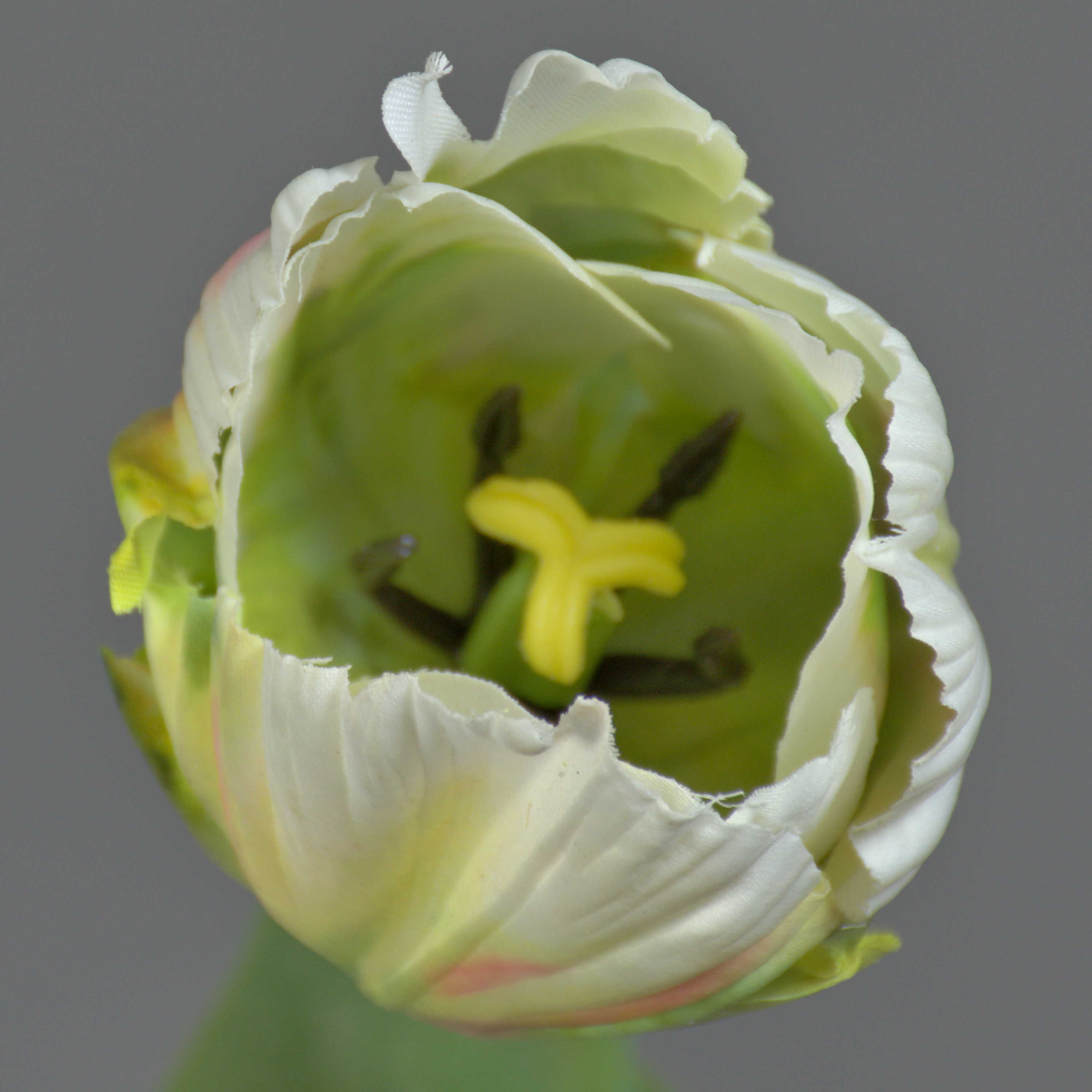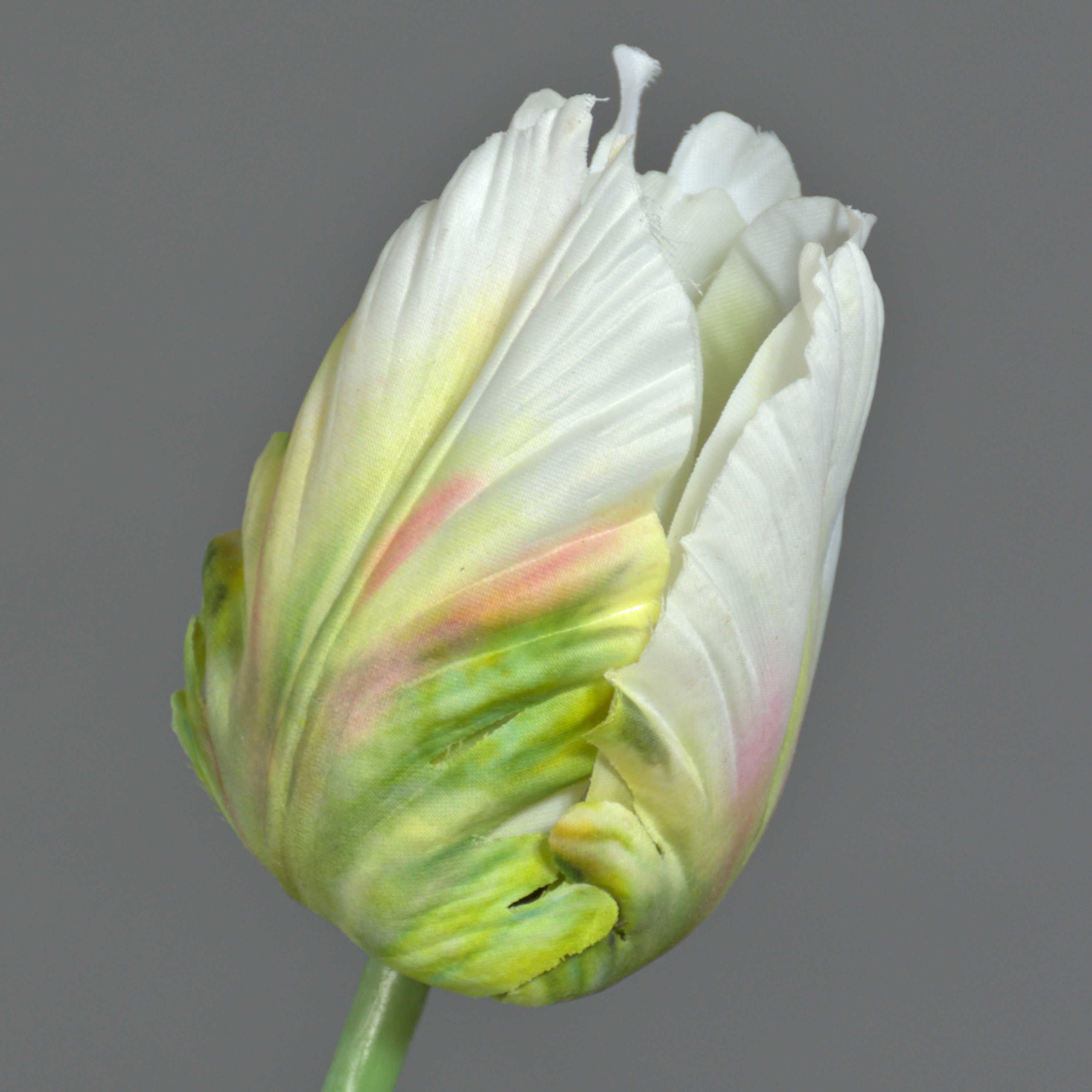 Artificial flower Parrot tulip UAKARI, white-green, 26"/65cm, Ø2.4"/6cm