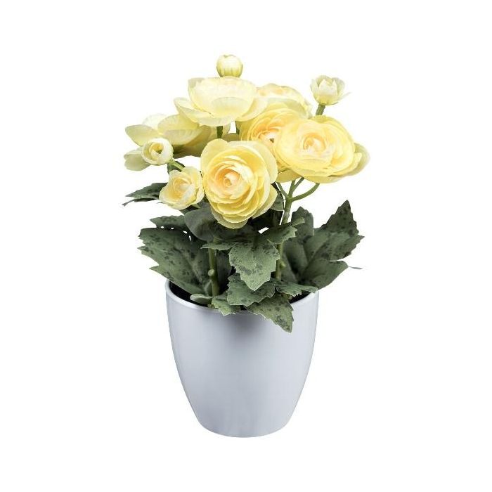 Artificial flower Ranunculus SLIVOR in melamine planter, light yellow, 8"/20cm