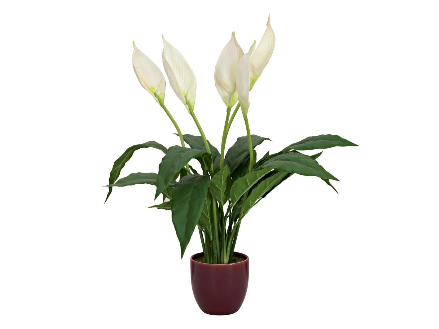 Artificial flower Spathiphyllum AYASHA with blossoms, ceramic pot, white, 24"/60cm