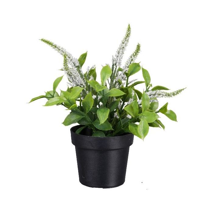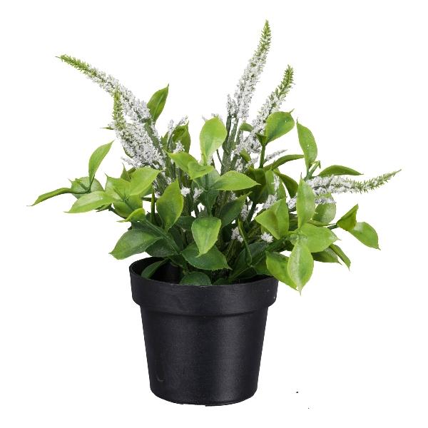 Artificial flower Speedwell GRINTOL in decorative pot, white, 7"/18cm