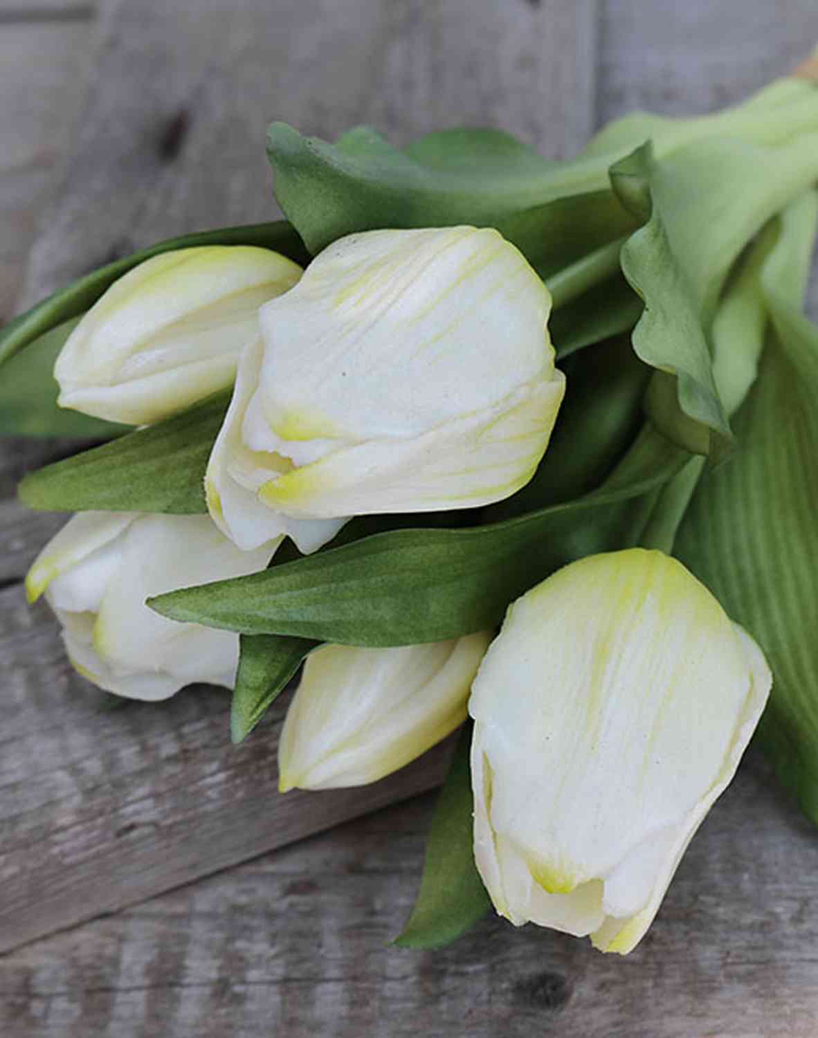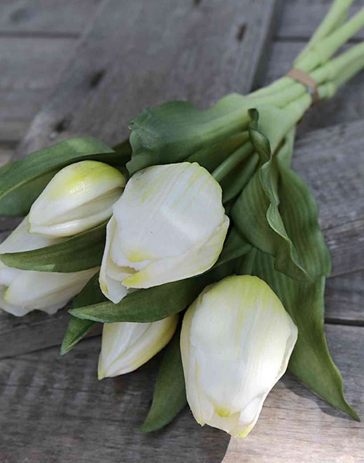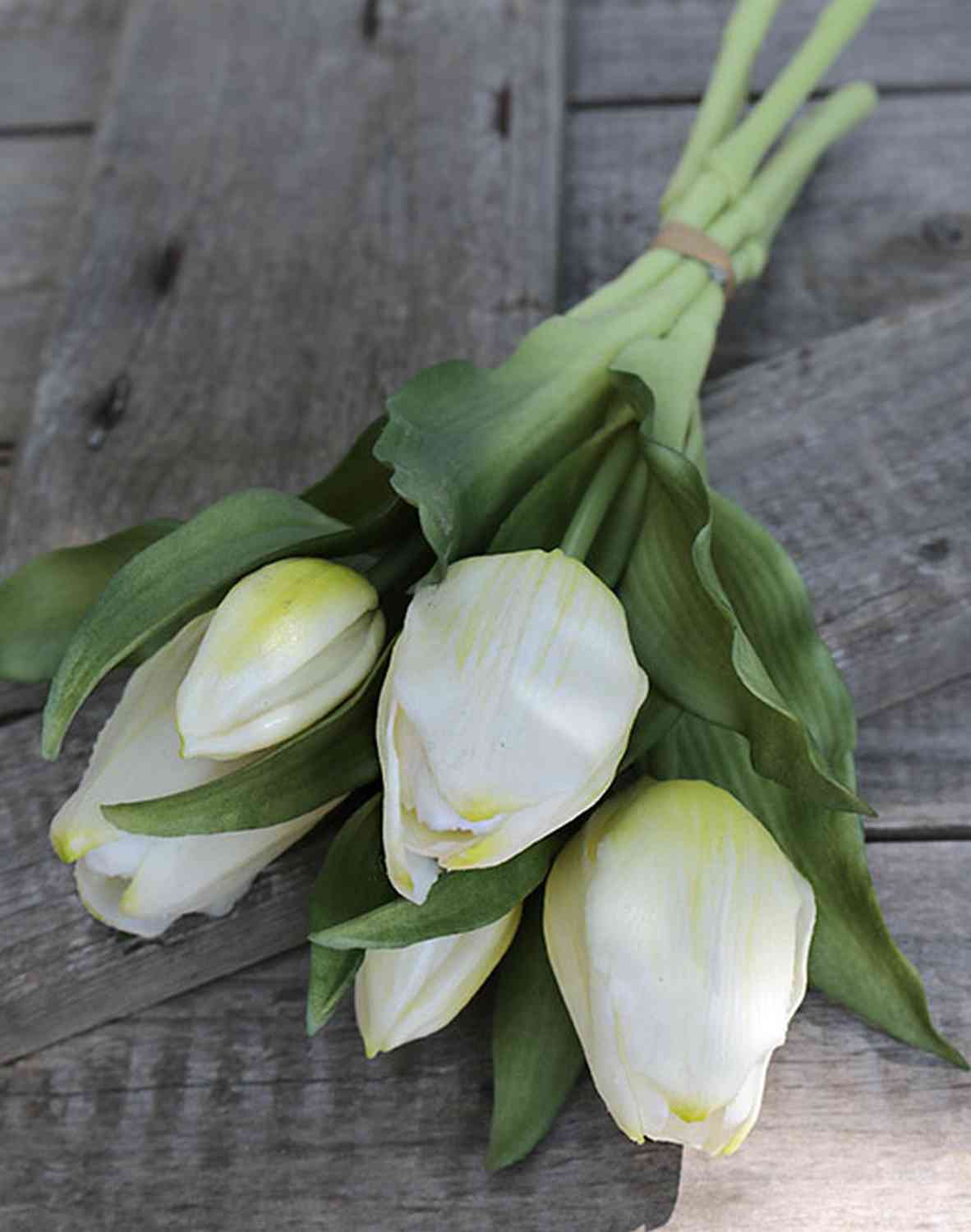 Artificial flowers Tulip bouquet LEANA, white-green, 12"/30cm, Ø8"/20cm