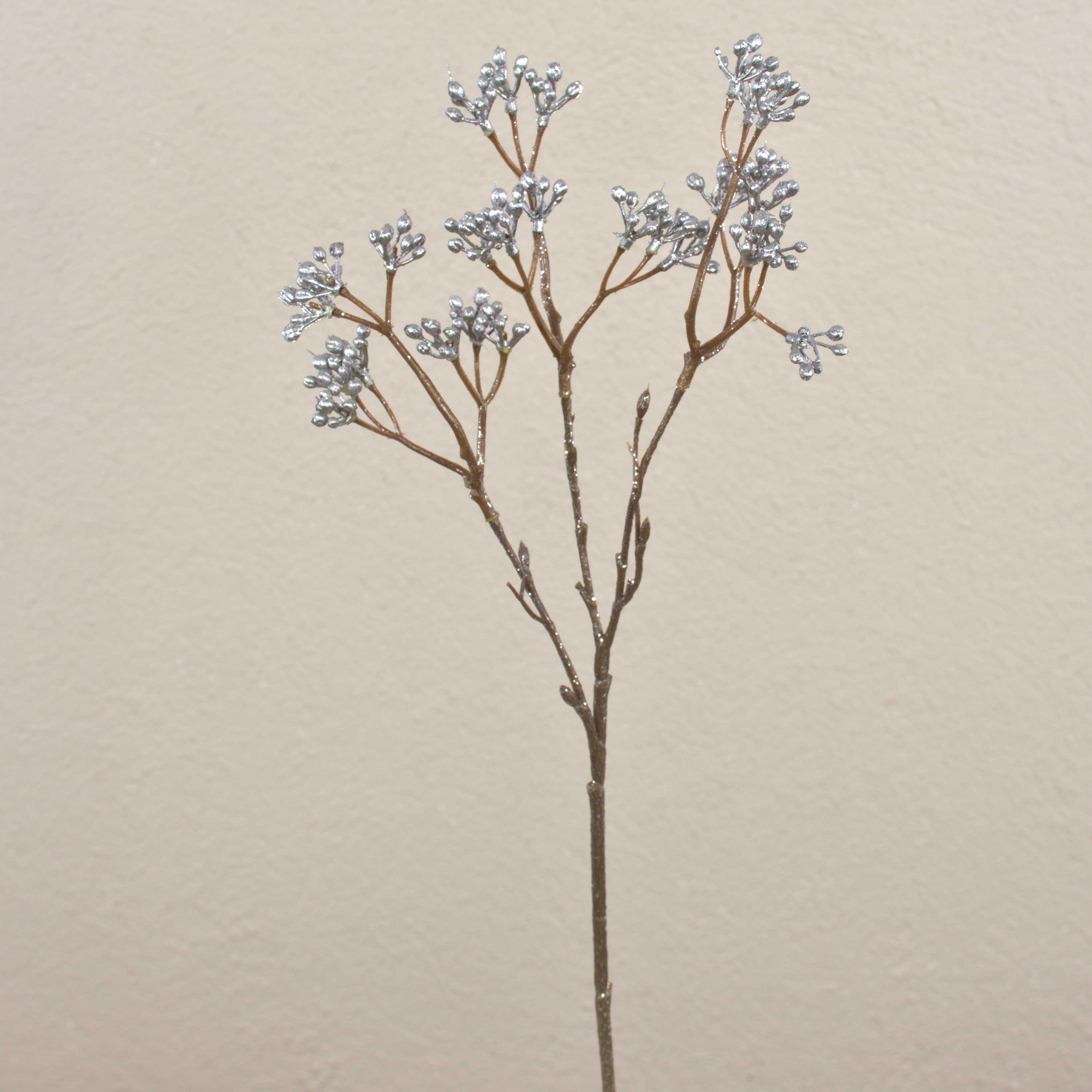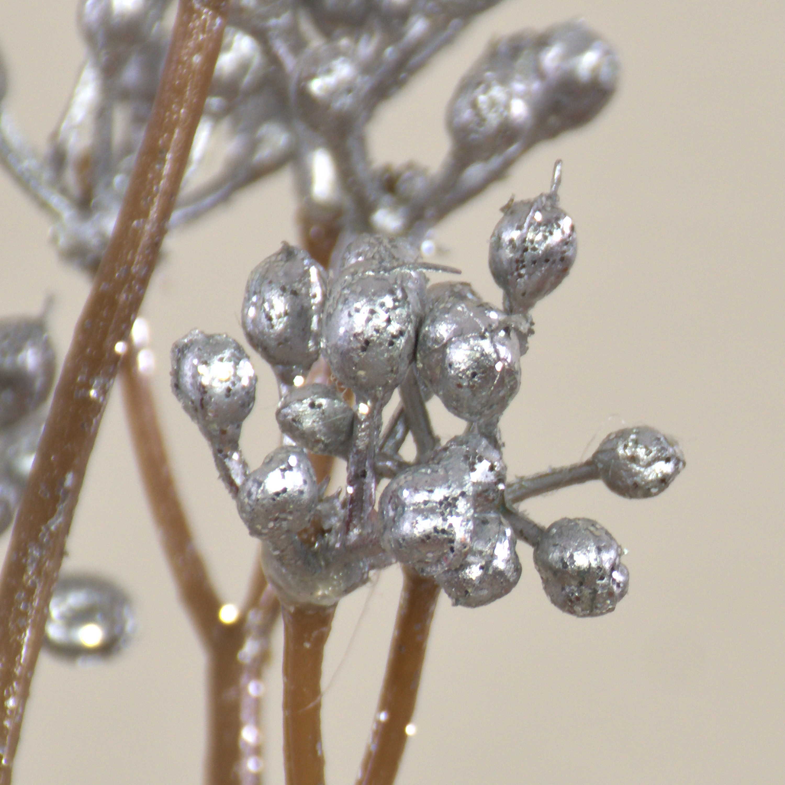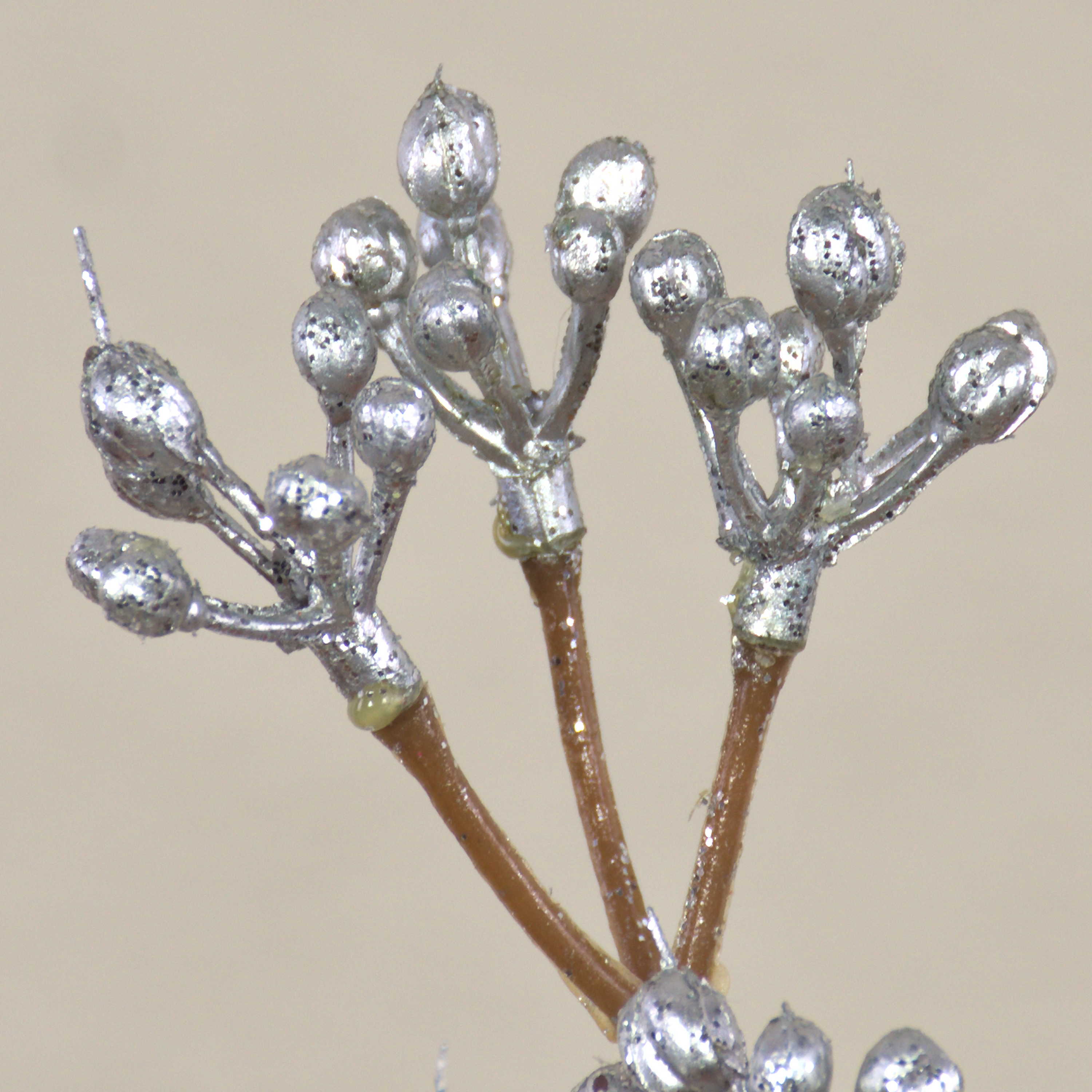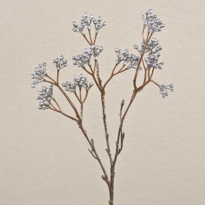 Artificial gaultheria branch BENZO with berries, glitter, silver, 16"/40cm