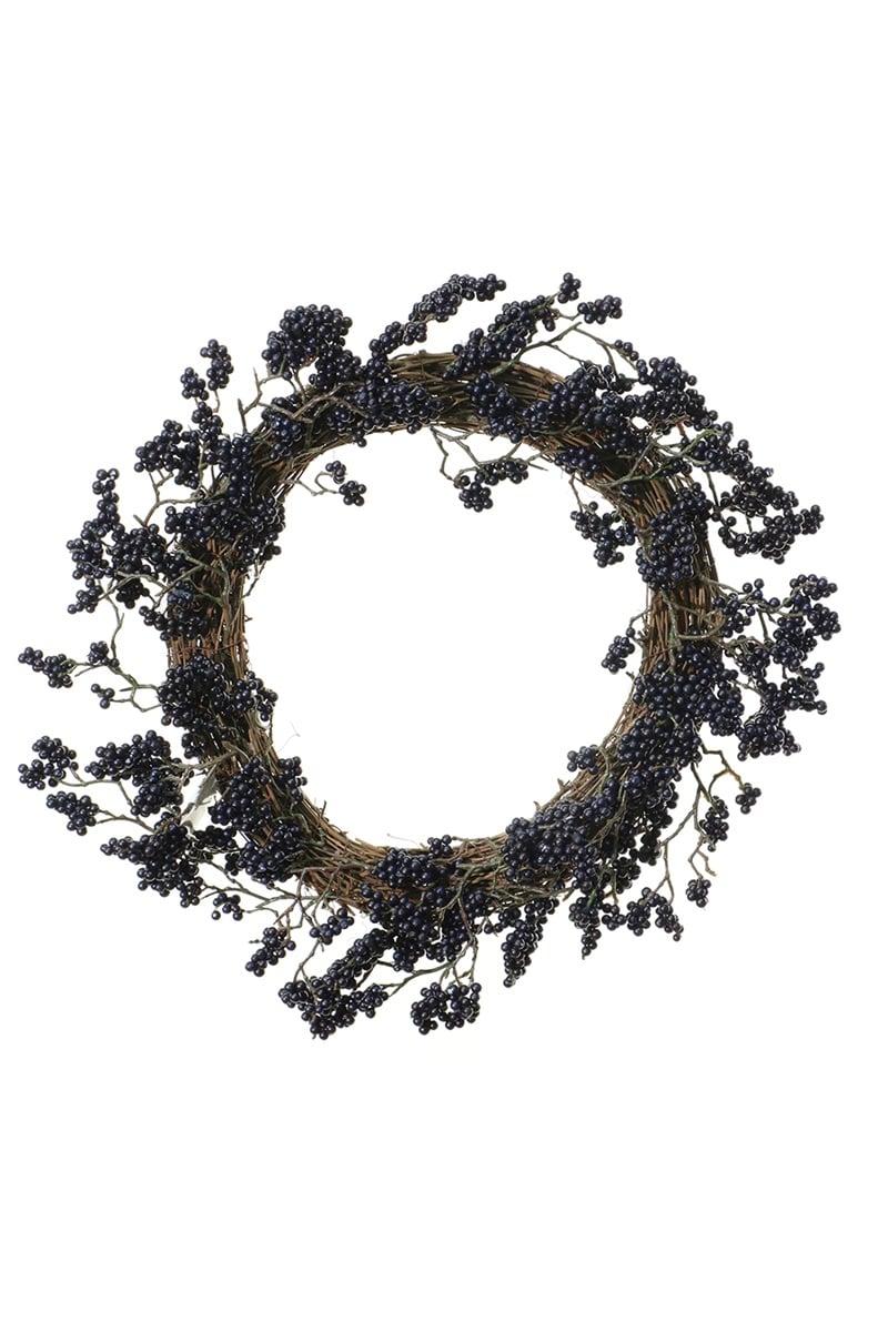 Artificial gaultheria wreath CALLAN, blue, Ø 14"/35cm
