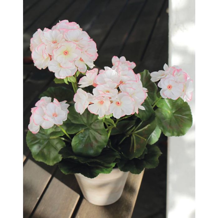 Artificial geranium AISCHA in decorative pot, white-pink, 14"/35cm, Ø2.4"-3.1"/6-8cm