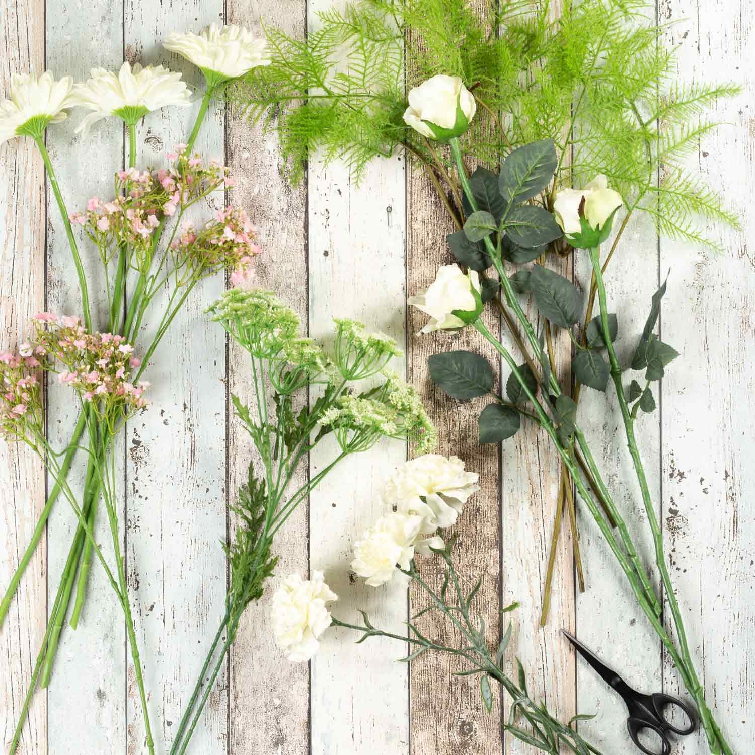 - Tied together with a sisal cord, the flowers and branches can be shortened individually or used separately for creative projects after removing the cord