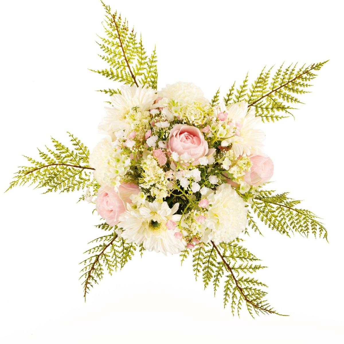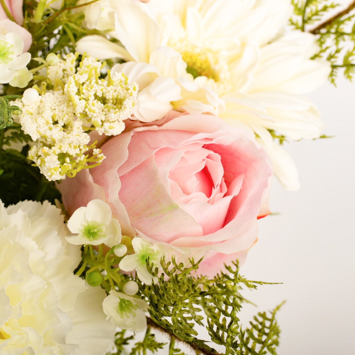 Artificial gerbera bouquet MALIA, rose, carnation, white-pink, 16"/40cm, Ø12"/30cm