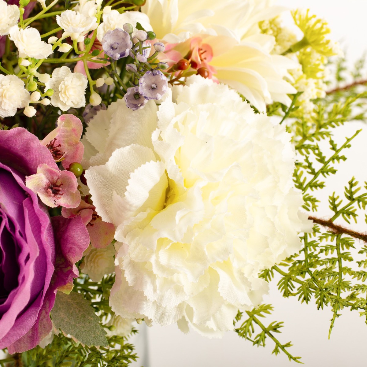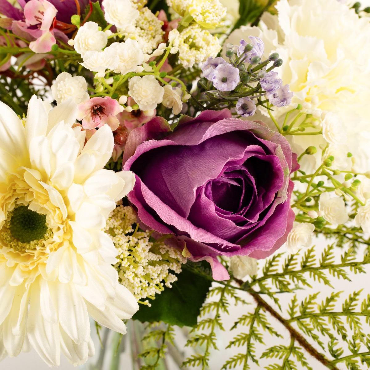 Artificial gerbera bouquet MALIA, rose, carnation, white-purple, 16"/40cm, Ø12"/30cm